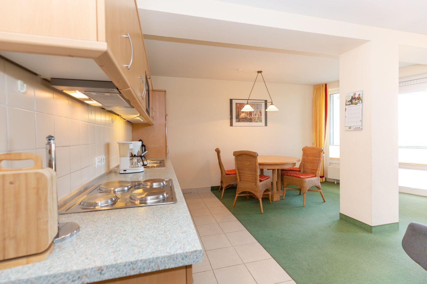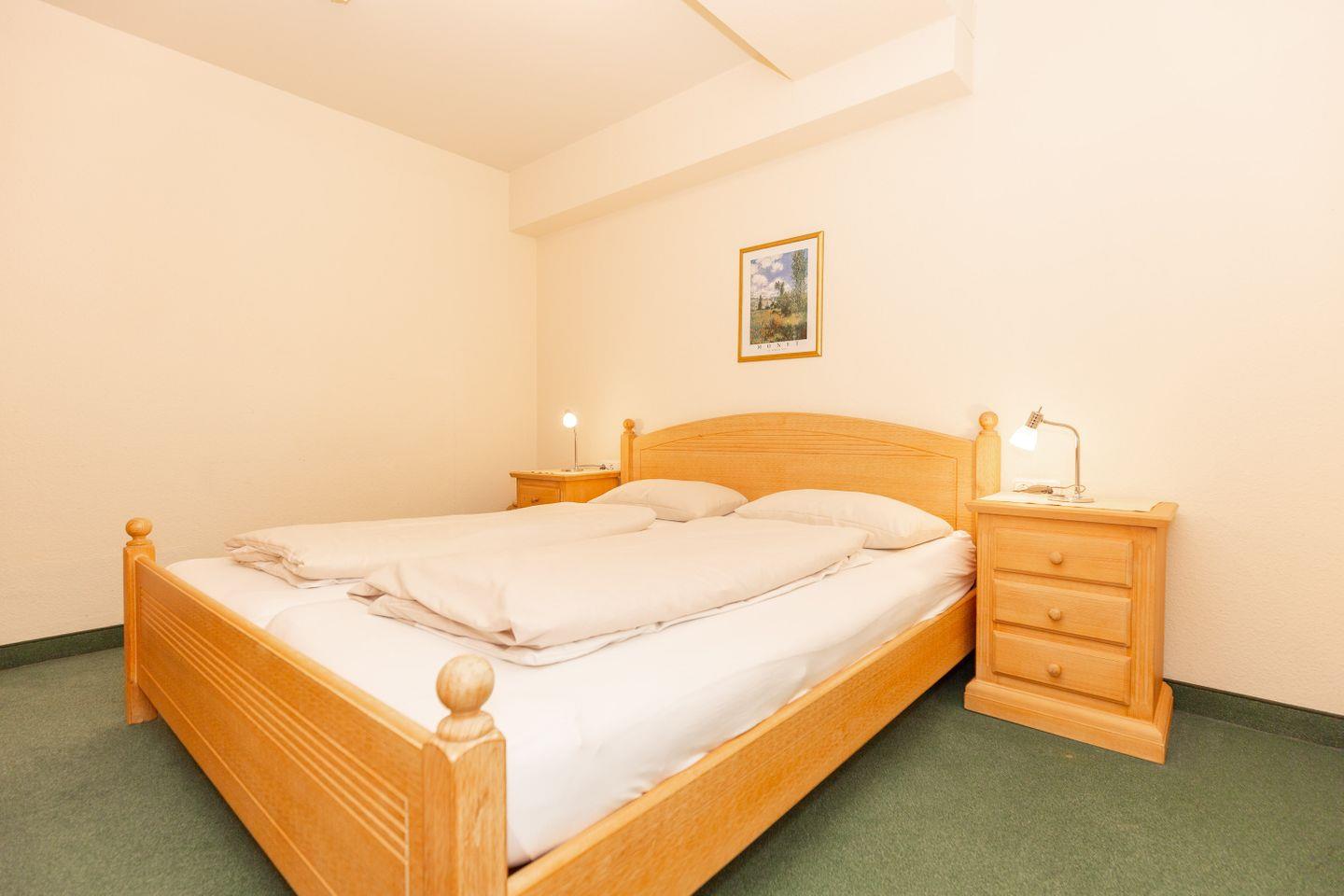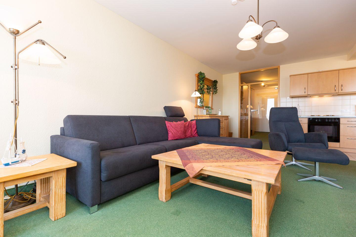 Haus "Kurpark-Residenz", Typ D1, Appartement-Nr. "215", bis 4 Personen, 2. OG, Nordseite (Seesicht Richtung "Elbe"), ca. 70 m² Wohnungsgröße, Wohnzimmer mit Schlafcouch, separates Schlafzimmer mit Doppelbett (innenliegend), Dusche/WC, Gäste-WC, Waschmaschine, Küchenzeile mit Mikrowelle, Backofen und Geschirrspüler, Loggia, SAT-TV, Tiefgaragenstellplatz, Haustiere sind nicht gestattet, Strandkorb im Sommer 2026.