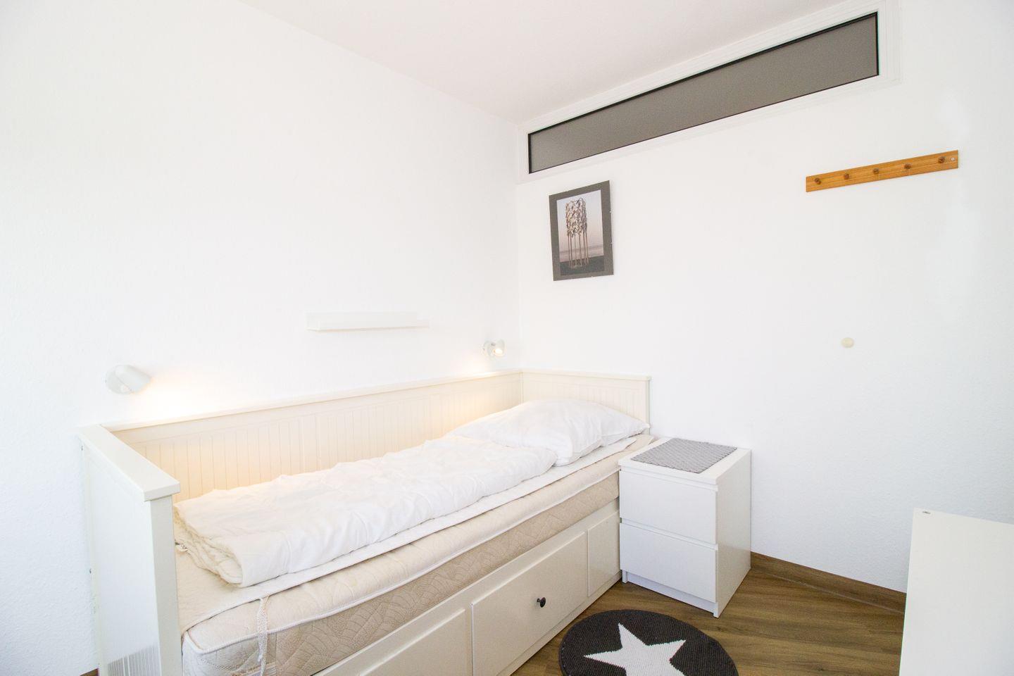 Haus "Trafalgar", Typ A-West, App.-Nr. "526", bis 3 Pers., 5. Etage, bis zur 4. Etage mit Fahrstuhl erreichbar, Westseite mit Meerblick Richtung Neuwerk (ohne Balkon), ca. 44 qm Größe, Wohn/Schlafraum mit Schrankbett, sep. Schlafzimmer mit Einzelbett, Küchenzeile mit Geschirrspüler und Mikrowelle, Vollbad/WC, Kabel-TV, Tiefgaragenstellplatz, Nichtraucherwohnung, Haustiere sind erlaubt.