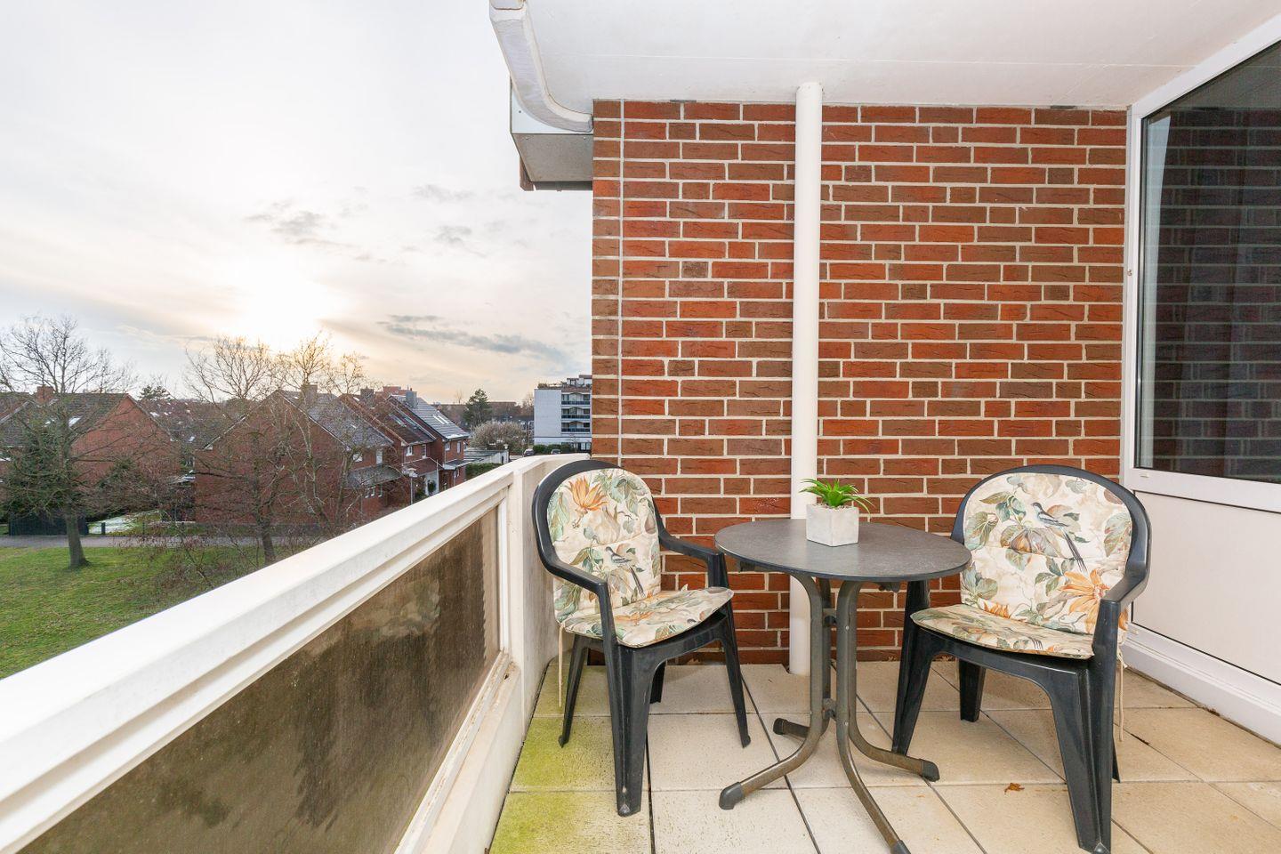 Der nach Süden ausgerichtete Balkon lädt mit bequemen Balkonmöbeln zu Sonnenbädern an der salzigen Nordseeluft ein. Zu jeder Tageszeit können unsere Gäste hier entspannen und ihren Urlaub in Ruhe genießen.