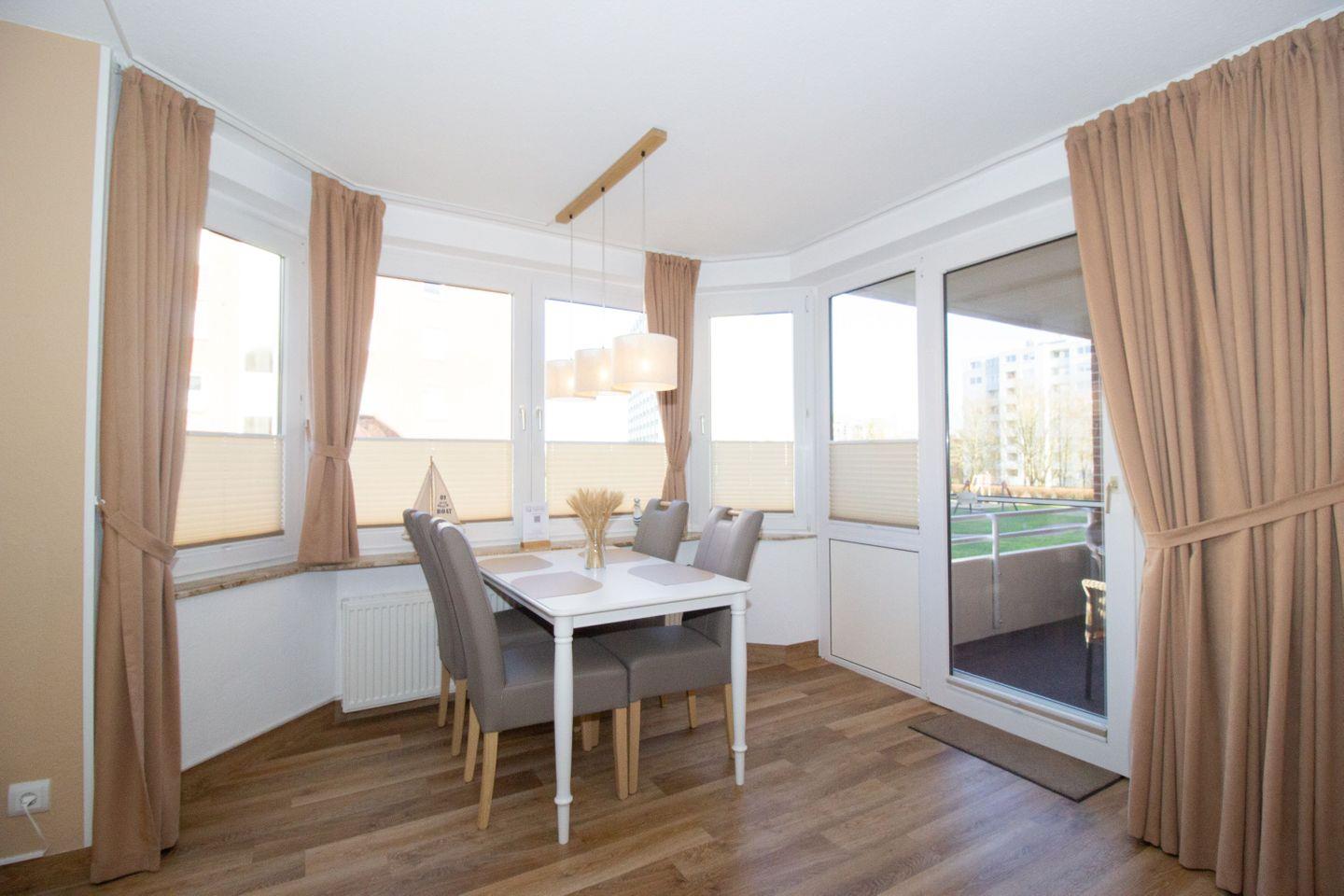 Aufstehen, rausgehen, Meeresluft genießen - kein Problem in dieser Ferienwohnung. Der möblierte Balkon lädt jederzeit ein, die frische Nordseeluft in aller Ruhe und unter freiem Himmel zu genießen, sei es bei Kaffee und Kuchen oder nach einem erlebnisreichen Urlaubstag.