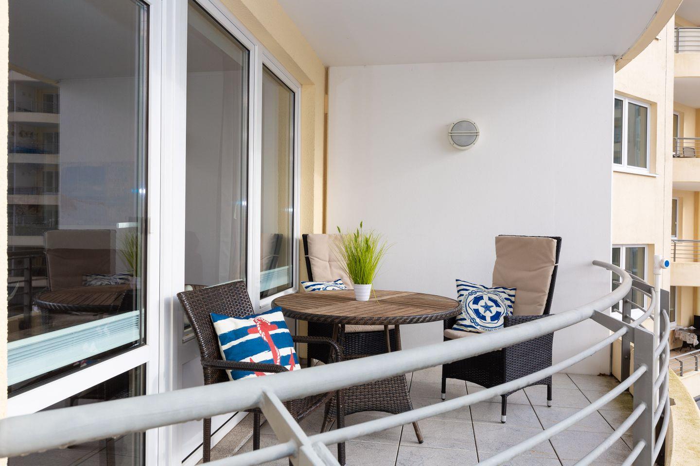 Moderne 3-Zimmer-Ferienwohnung in Cuxhaven-Döse mit Schwimmbad, Sauna und Balkon für erholsamen Familienurlaub.