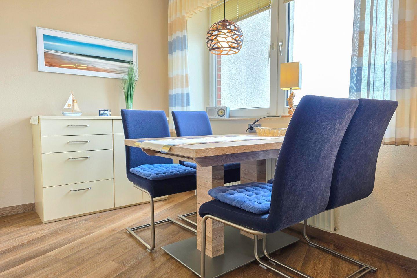 Im Sommer 2026 steht ein eigener Strandkorb am Döser Sandstrand zur Verfügung. Zur Ferienwohnung gehört ein Parkplatz in der Tiefgarage, von der Sie die Ferienwohnung in der 5. Etage bequem mit dem Fahrstuhl erreichen. Ein kostenfreier Internetzugang per WLAN ist vorhanden.