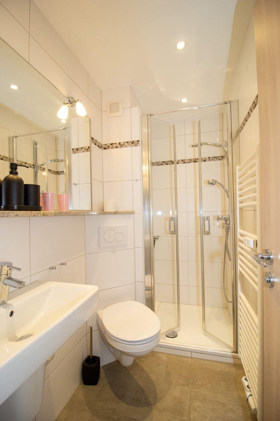 Die Ferienwohnung verfügt über einen Wohn/Schlafraum, ein kleines separates Schlafzimmer sowie ein Badezimmer mit Dusche. Die offene Küche ist modern ausgestattet und grenzt direkt an das Wohnzimmer an. Zur Ausstattung gehören ein 4-Platten-Ceranfeld, Backofen, Mikrowelle, Kühlschrank, Toaster, Wasserkocher, Kaffeemaschine sowie komplettes Geschirr und Besteck. Dies ermöglicht eine flexible Selbstversorgung während Ihres Aufenthalts. Des Weiteren steht eine Spülmaschine zur Verfügung, welche den Abwasch erleichtert.