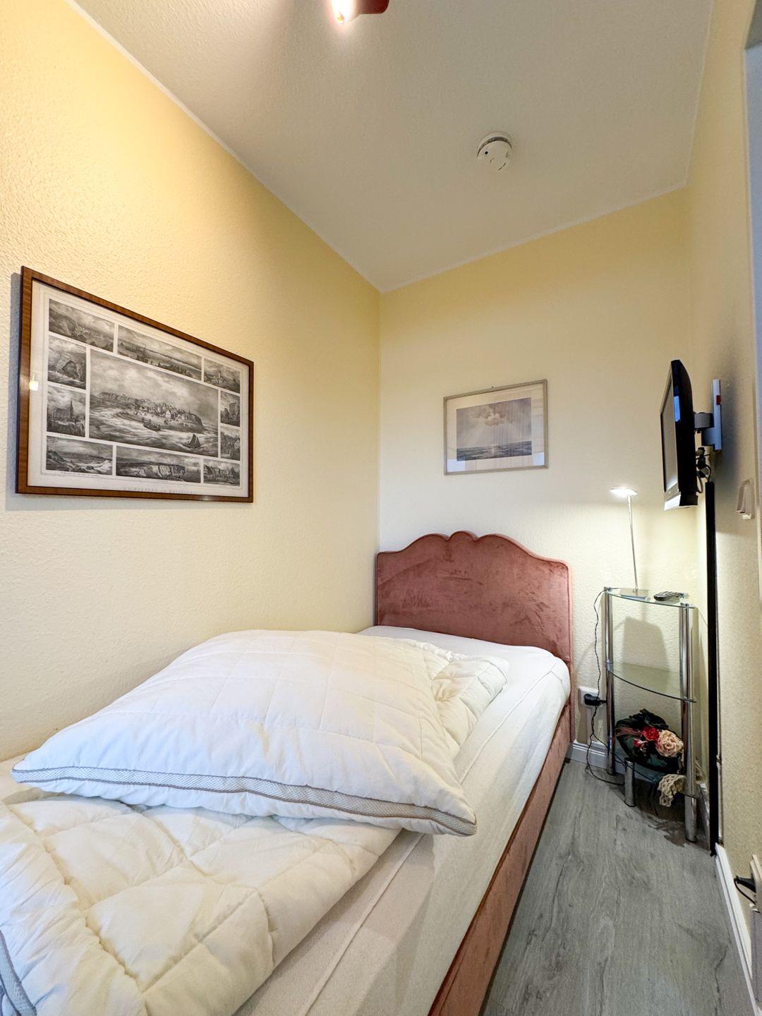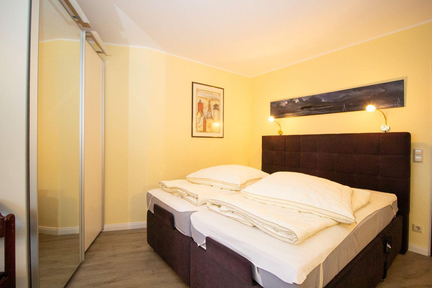 Haus "Lord Nelson", Typ 2, App.-Nr. 403, bis 3 Personen, 4. Etage, ca. 40 qm, Lage Richtung Weltnaturerbe Wattenmeer, Meerblick Richtung Neuwerk, Wohn/Schlafbereich mit feststehendem Doppelbett (2 einzelne Matratzen), sep. Schlafzimmer mit Einzelbett, Dusche/WC, Küchenzeile mit Mikrowelle und Geschirrspüler, Balkon, kostenl. WLAN-Anschluss im App., Kabel-TV, Tiefgaragenstellplatz, Nichtraucherappartement, Haustiere sind nicht erlaubt, Strandkorb im Sommer 2026.