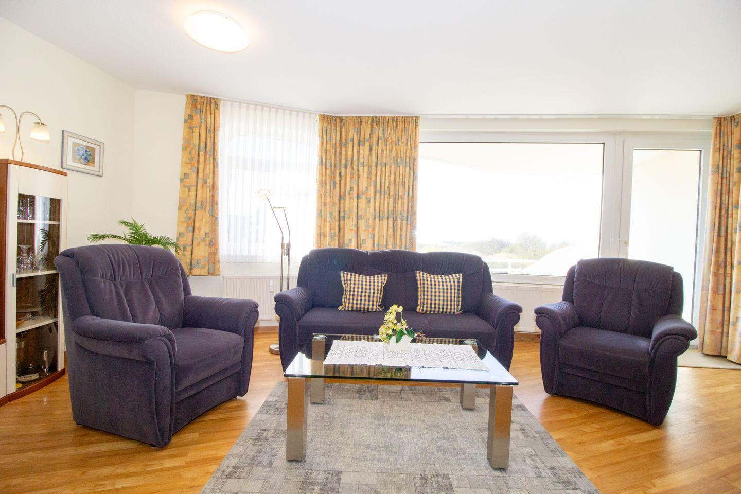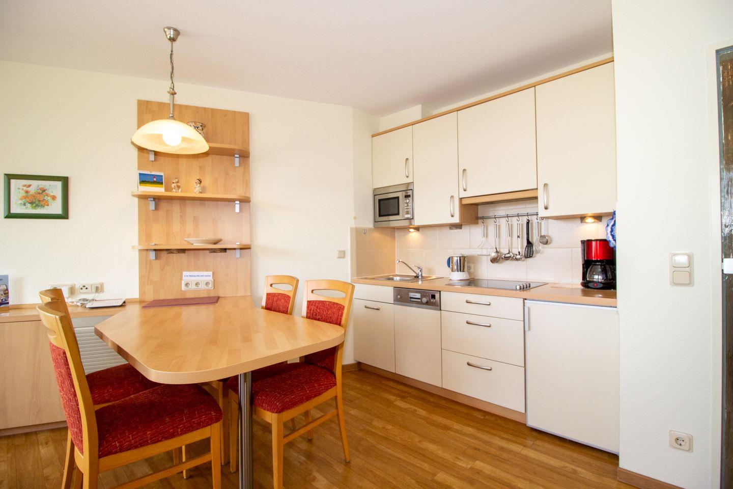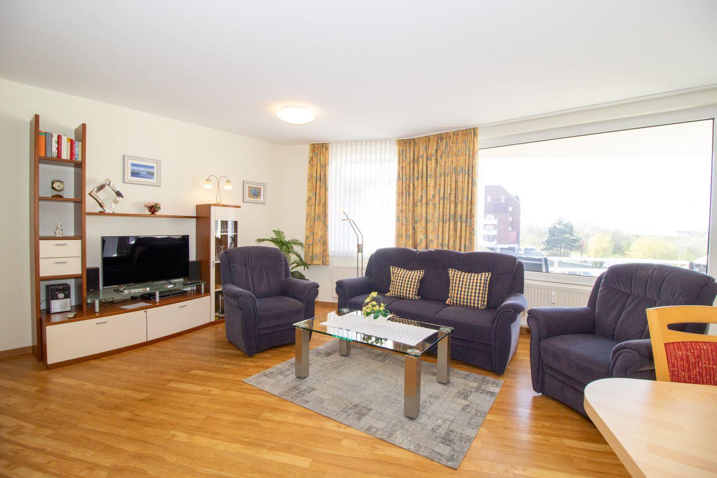 Haus "Trafalgar", TypC, App.-Nr. 223 bis 2 Erwachsene, 2.Etage, ca. 55qm, Westseite, separates Schlafzimmer mit Doppelbett (innenliegend), Küchenzeile mit Geschirrspüler und Mikrowelle, Dusche/WC, Balkon, Kabel-TV, W-Lan Zugang im App, Tiefgaragenstellplatz, Strandkorb im Sommer 2026, Haustiere nicht gestattet, Wohnung nur für 2 Erwachsene, Nichtraucherwohnung