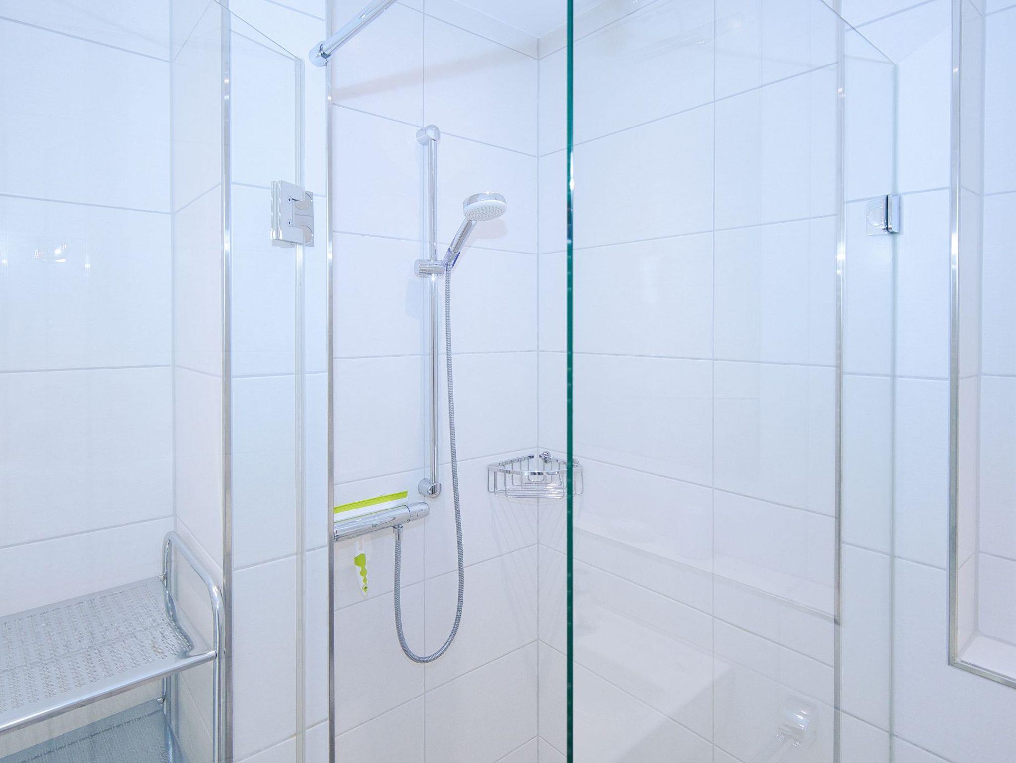 Das Badezimmer verfügt über eine Dusche, ein WC und ein Urinal. Ein ebenerdiger Doppelgaragenstellplatz mit großzügigen Maßen von 2,75 m Breite und 190 cm Höhe gehört zur Wohnung. Des Weiteren stehen Ihnen ein abschließbarer Fahrradabstellplatz im Keller sowie weitere im Außenbereich zur Verfügung.