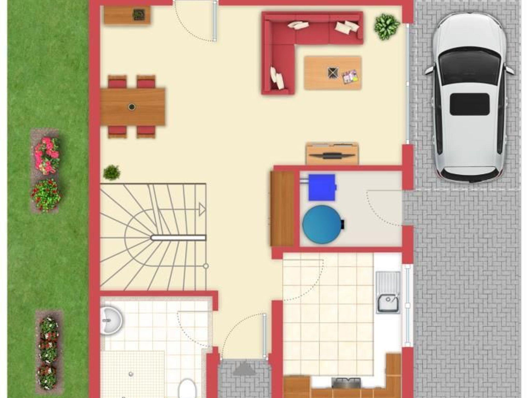 Im Erdgeschoss erwartet Sie ein offener Wohn- und Essbereich mit gemütlicher Sitzecke, Zugang zur Terrasse mit Garten, sowie einer komplett ausgestatteten Einbauküche. Ideal für gemeinsame Mahlzeiten und entspannte Abende. Ebenfalls im Erdgeschoss befindet sich ein modernes Duschbad mit Waschbecken ? bitte beachten Sie: ohne WC.