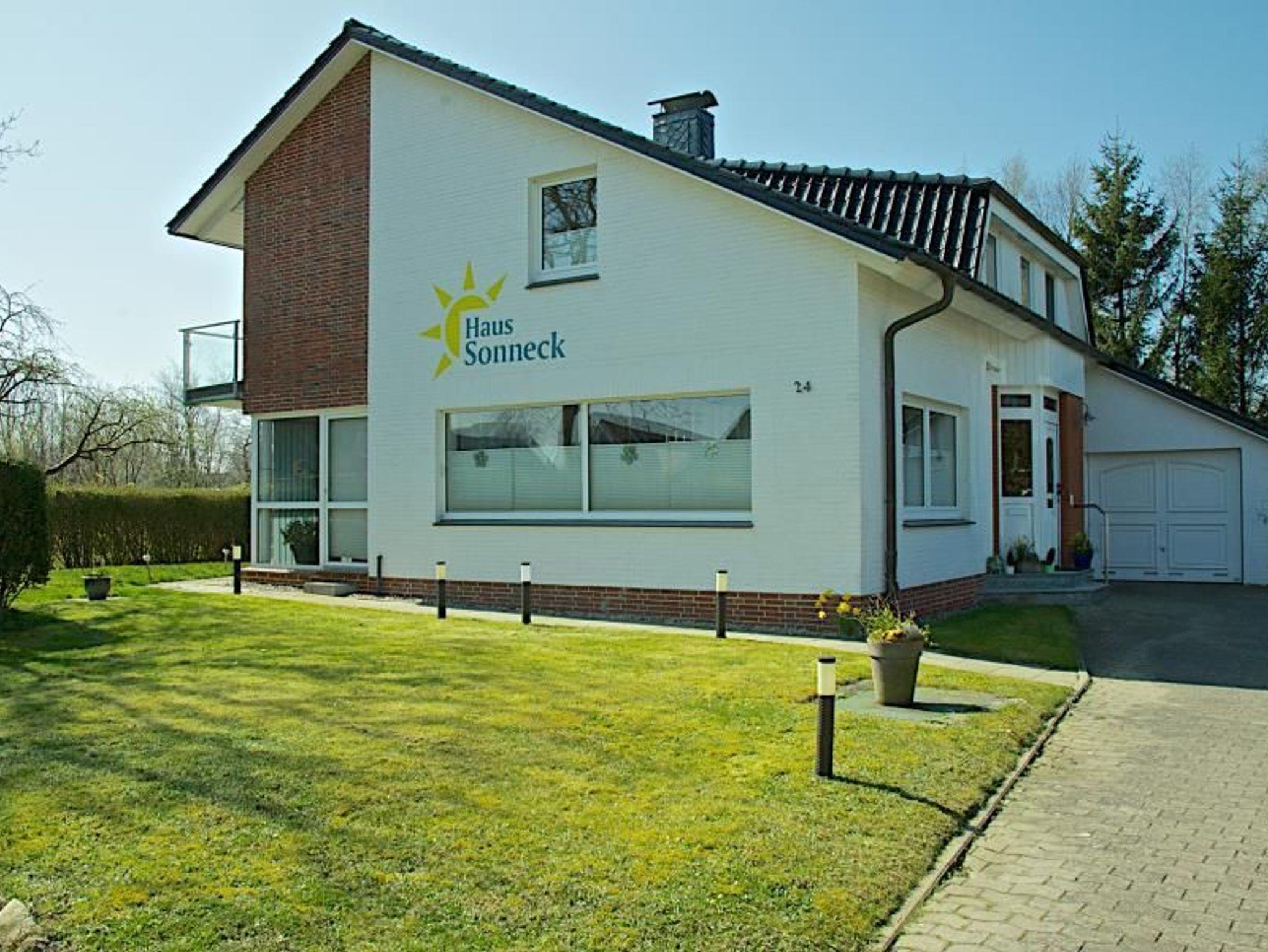Haus Sonneck. Wohnung 4, Erdgeschoss, 4-Raum für bis zu 5 Personen, mit 3 Schlafbereichen. Ein gemütlicher, sowie heller Ess- und Wohnbereich mit einem kleinen Kaltwintergarten und angrenzender Terrasse bildet den Mittelpunkt dieser Ferienwohnung. Die sonnige Terrasse, sowie mehrere Sitzmöglichkeiten im großen Garten lassen Sie am Nachmittag und in den Abendstunden z.B. am Grill entspannen. Das Objekt ist ruhig in 2. Reihe am Sahlenburger Weg unweit zum Zentrum und Strand von Duhnen gelegen.