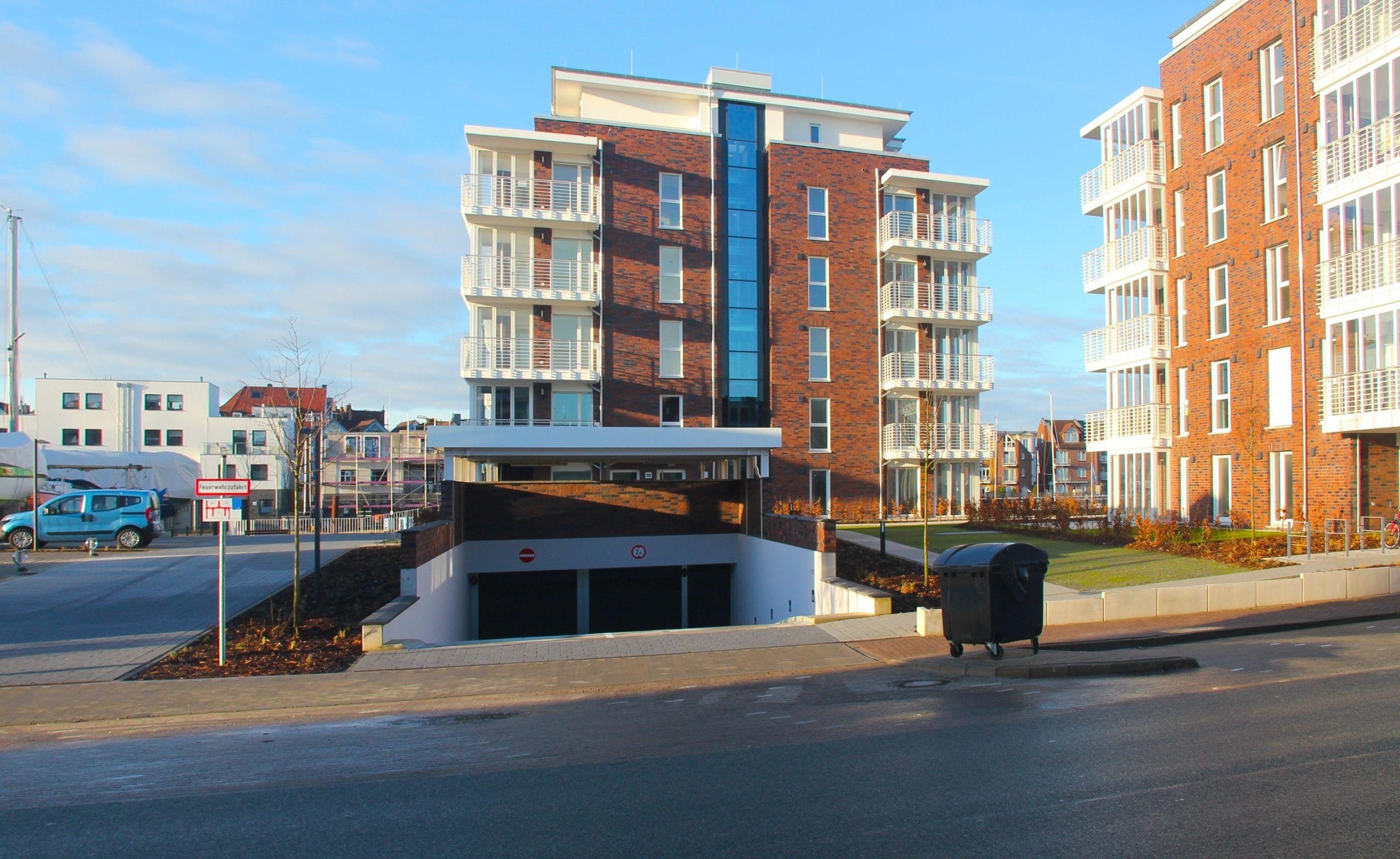 Sie wohnen direkt im Yachthafen von Cuxhaven. Die Wohnanlage liegt direkt an der Kaimauer. Der Weltschiffahrtsweg nach Hamburg liegt direkt vor der Hafenanlage.
