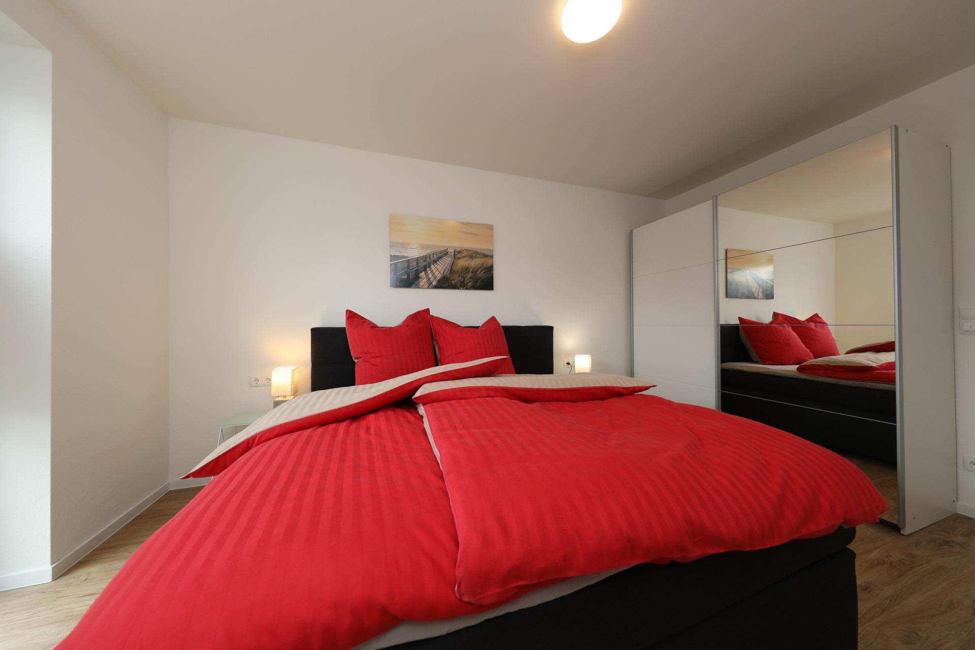 Das liebevoll eingerichtete Schlafzimmer verfügt über ein Boxspringbett (180 x 200) und ist mit Verdunklungsgardinen ausgestattet. Im Wohnzimmer kann das Sofa zu einer Schlafcouch (Liegefläche 120 x 190) umgestaltet werden.