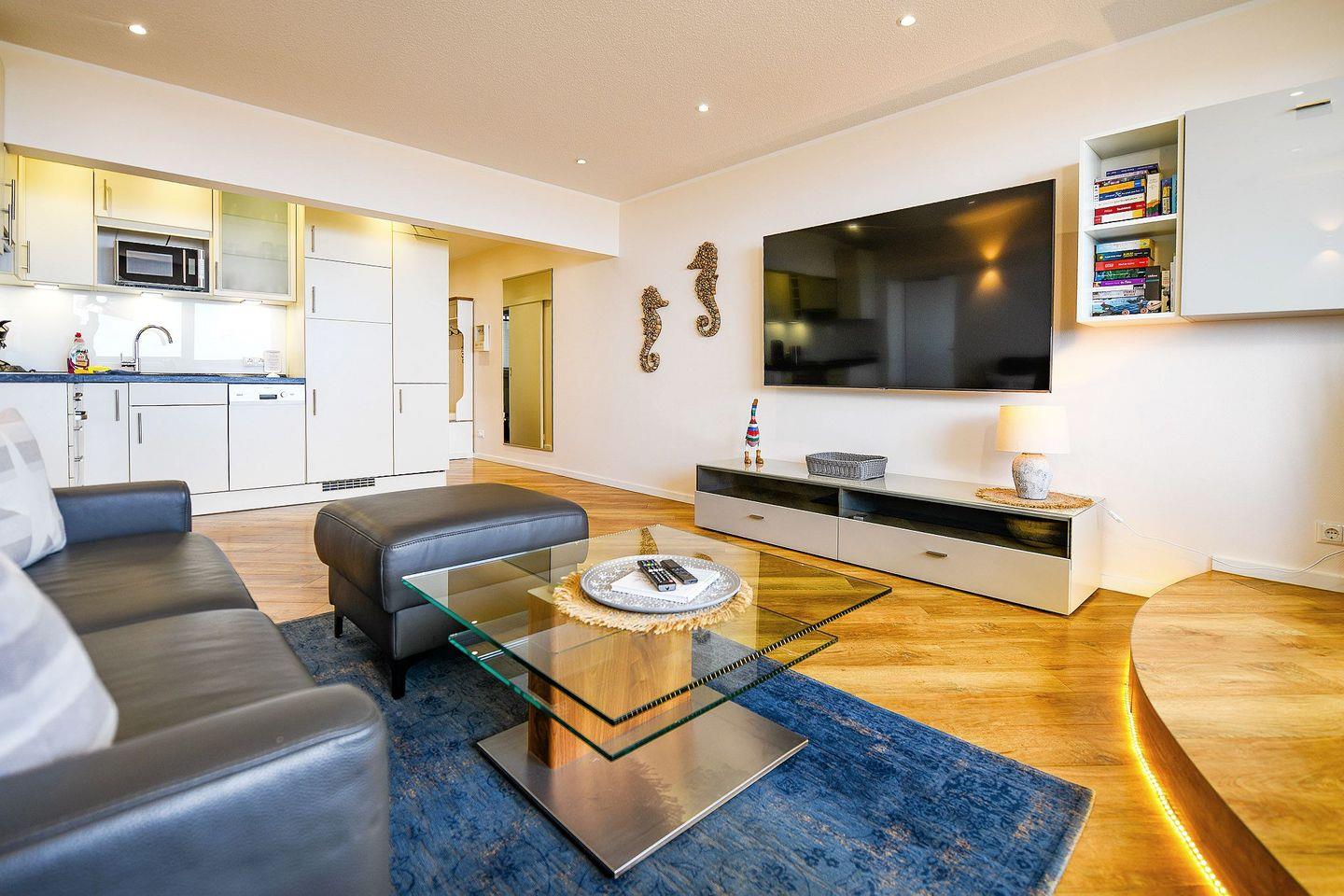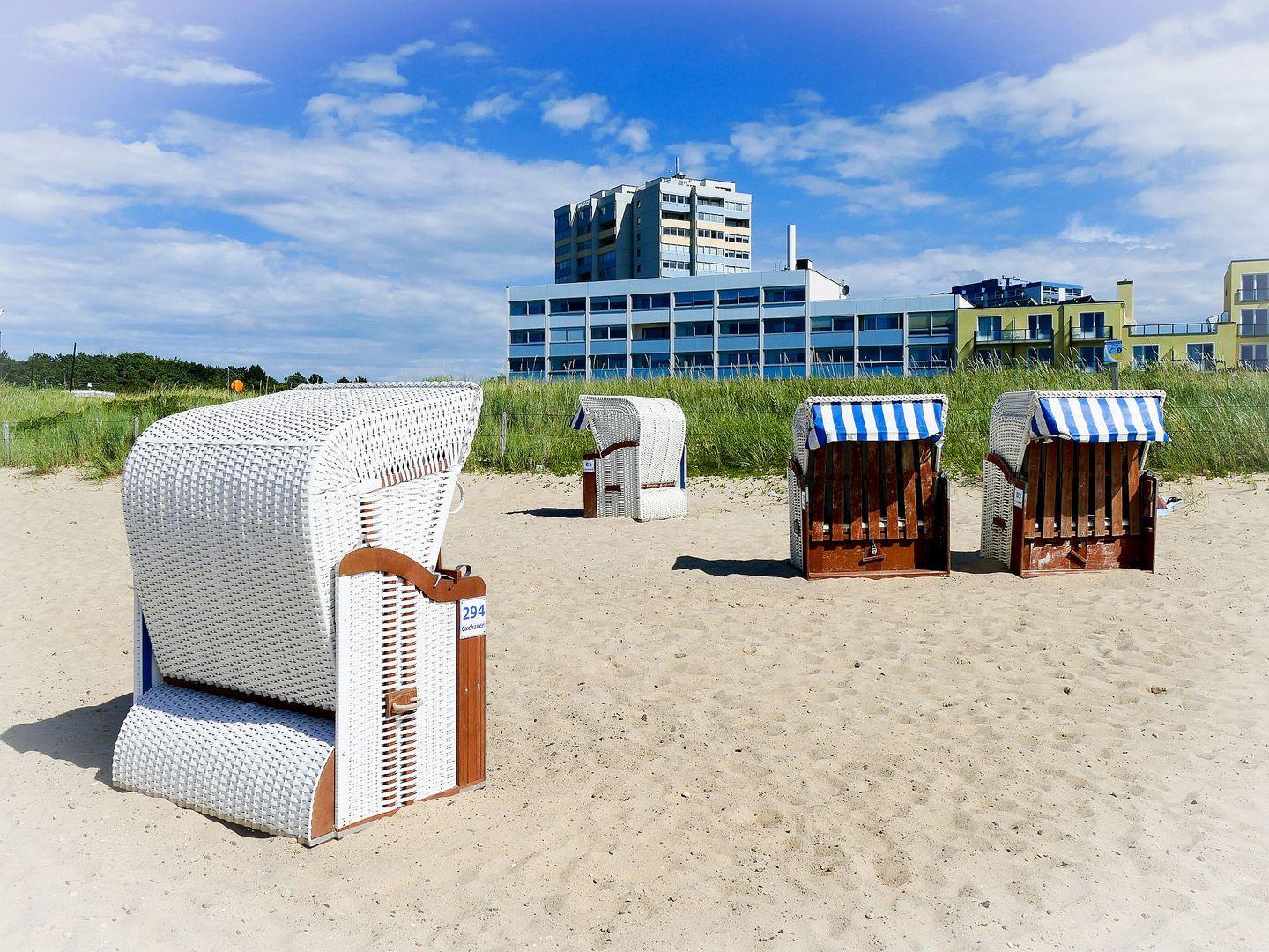 Moderne Ferienwohnung mit Meerblick, Balkon, Schwimmbad und zentraler Lage am Sahlenburger Strand.