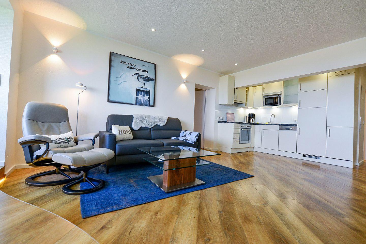 Die Ferienwohnung AS23 im Haus „Am Sahlenburger Strand“ in Cuxhaven-Sahlenburg gehört zu den begehrten Unterkünften direkt an der Promenade. In der 3. Etage liegt die komfortable 3-Raum-Wohnung mit zwei Schlafzimmern, Wohnbereich und voll ausgestatteter Küche. Vom verglasten Balkon und der großen Fensterfront genießen Sie freien Blick auf die Nordsee, die Insel Neuwerk, Schifffahrtsweg, Kitesurfer und Wattwagen.