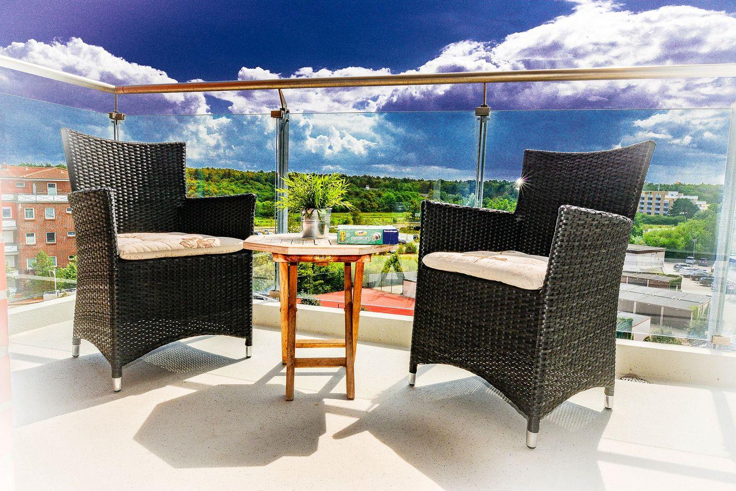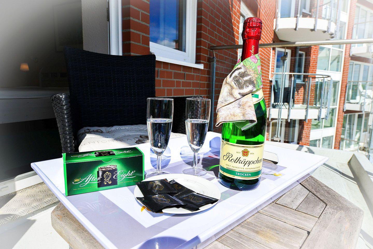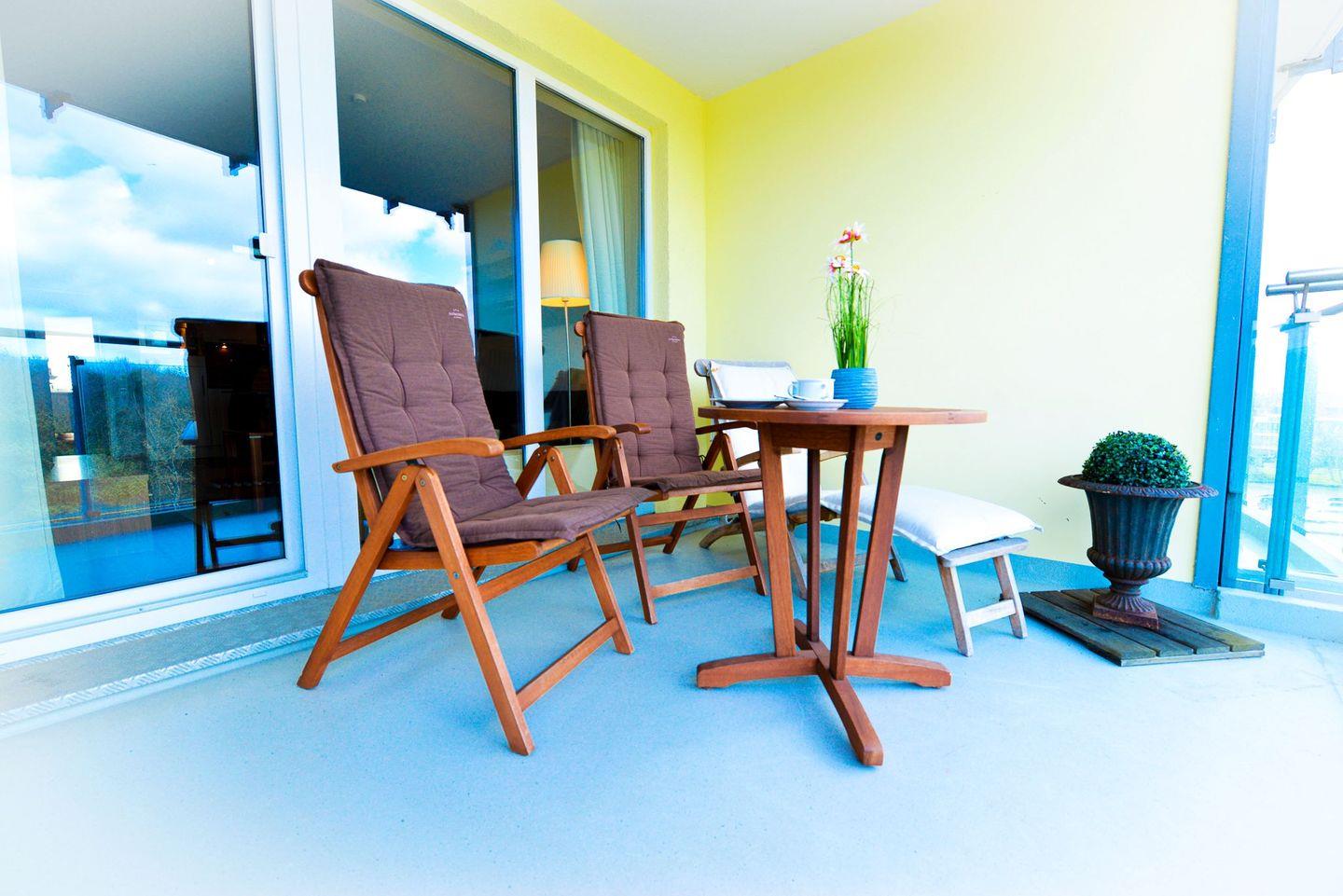 Moderne Ferienwohnung NB45 in Cuxhaven-Sahlenburg mit zwei Balkonen und Meerblick, ideal für erholsame Tage an der Nordsee.