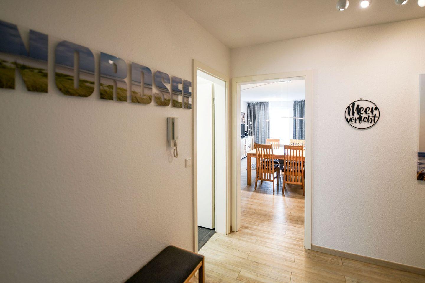 Dank der strandnahen Lage erreichen Sie das Meer bequem zu Fuß. Die Wohnung verfügt über zwei gemütliche Schlafzimmer mit direktem Zugang zum großen Südbalkon, der zum Sonnen und Entspannen einlädt. Der helle Wohnbereich bietet einen weiteren Balkon mit herrlichem Meerblick und Fernsicht auf die Insel Neuwerk. Kostenloses WLAN, TV, ein eigener Parkplatz direkt am Haus sowie eine voll ausgestattete Küchenzeile sorgen für zusätzlichen Komfort. Das moderne Duschbad überzeugt mit stilvoller Ausstattung. Die haustierfreie Wohnung eignet sich besonders für Allergiker. In unmittelbarer Umgebung laden Sandstrand, Sahlenburger Heide, Wernerwald sowie zahlreiche Rad- und Wanderwege zu abwechslungsreichen Freizeitaktivitäten ein. Ein saisonaler Bäcker im Haus rundet das Angebot ab.