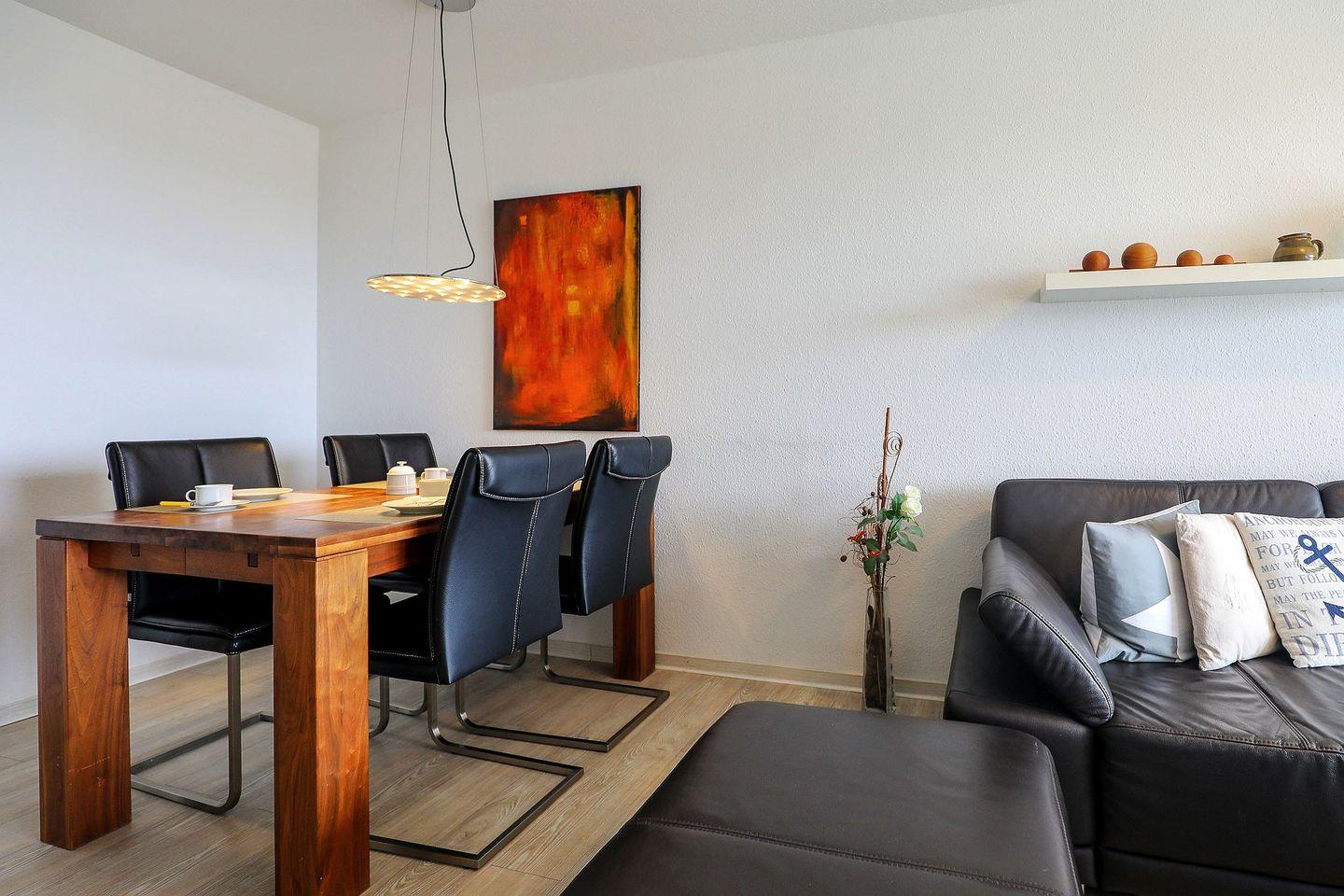 Freuen Sie sich auf zwei gemütliche Schlafzimmer, ein komfortables Wohnzimmer sowie eine separate, voll ausgestattete Küche mit Zugang zum großzügigen überdachten Südbalkon. Ein weiterer Balkon am Wohnbereich bietet einen schönen Blick Richtung Nordsee. Das Badezimmer mit Badewanne lädt nach einem erlebnisreichen Urlaubstag zum Entspannen ein. Kostenloses WLAN, zwei Fernseher und ein eigener Tiefgaragenstellplatz sorgen für zusätzlichen Komfort während Ihres Aufenthalts. Auch Ihr kleiner Hund ist herzlich willkommen. Ein saisonaler Bäcker direkt im Haus rundet das Angebot ab. Strand, Wattenmeer, Wernerwald und die schöne Heidelandschaft befinden sich in unmittelbarer Nähe und machen die Wohnung zum perfekten Ort für Ihren Nordseeurlaub.