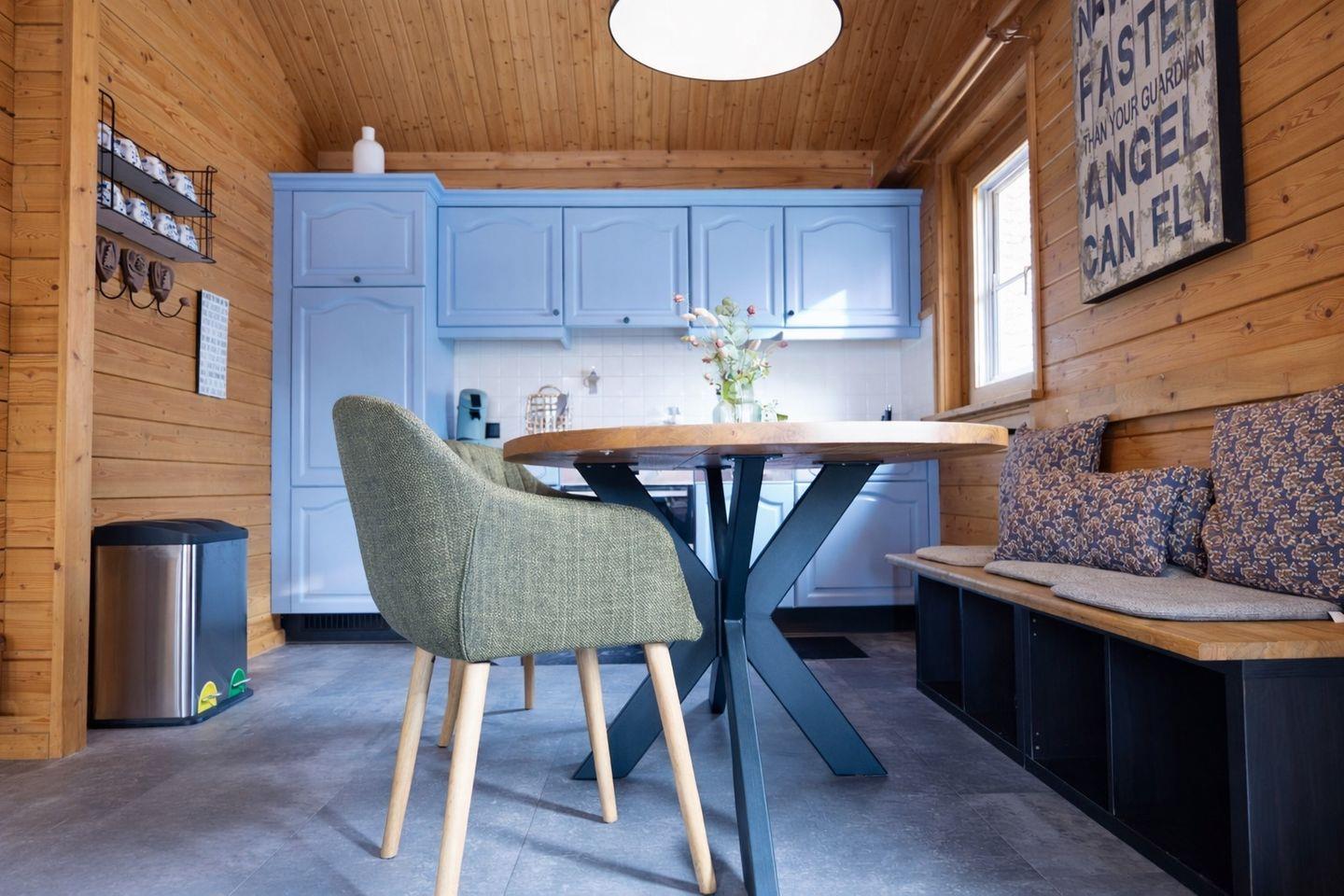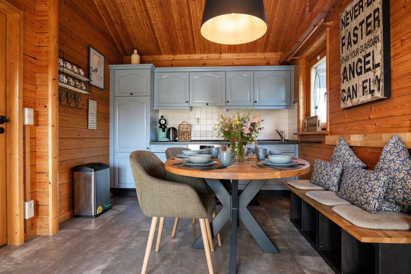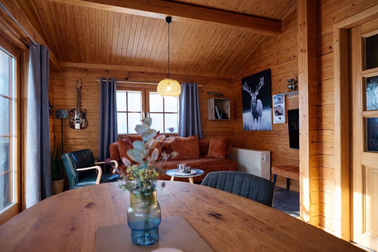 Die großzügigen, ebenerdigen Räumlichkeiten überzeugen durch einen großen Wohnbereich mit hochwertiger Couchgarnitur und gemütlichem Essbereich – ideal für gemeinsame Abende, Spiele oder entspannte Stunden nach einem langen Spaziergang am Deich.