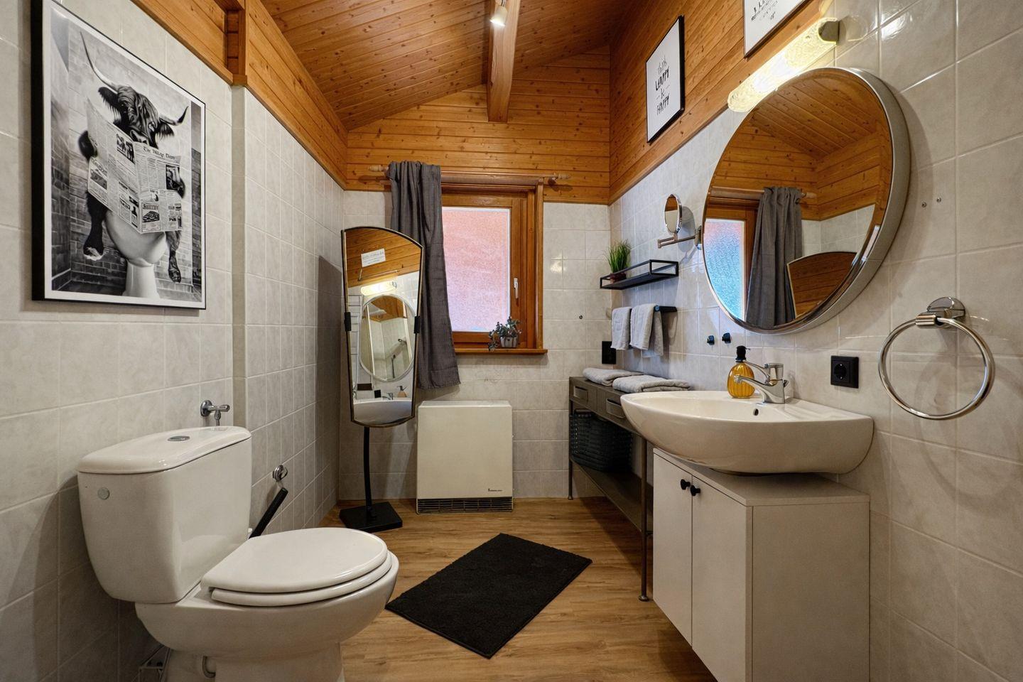 Das Haus verfügt über zwei frisch renovierte Schlafzimmer. Im Hauptschlafzimmer erwartet dich ein komfortables Boxspringbett mit hochwertigem Topper – für erholsamen Schlaf wie auf Wolken. Zusätzlich steht dir hier ein TV zur Verfügung.