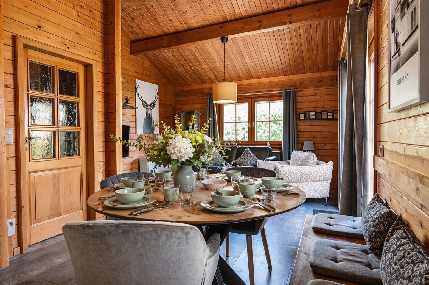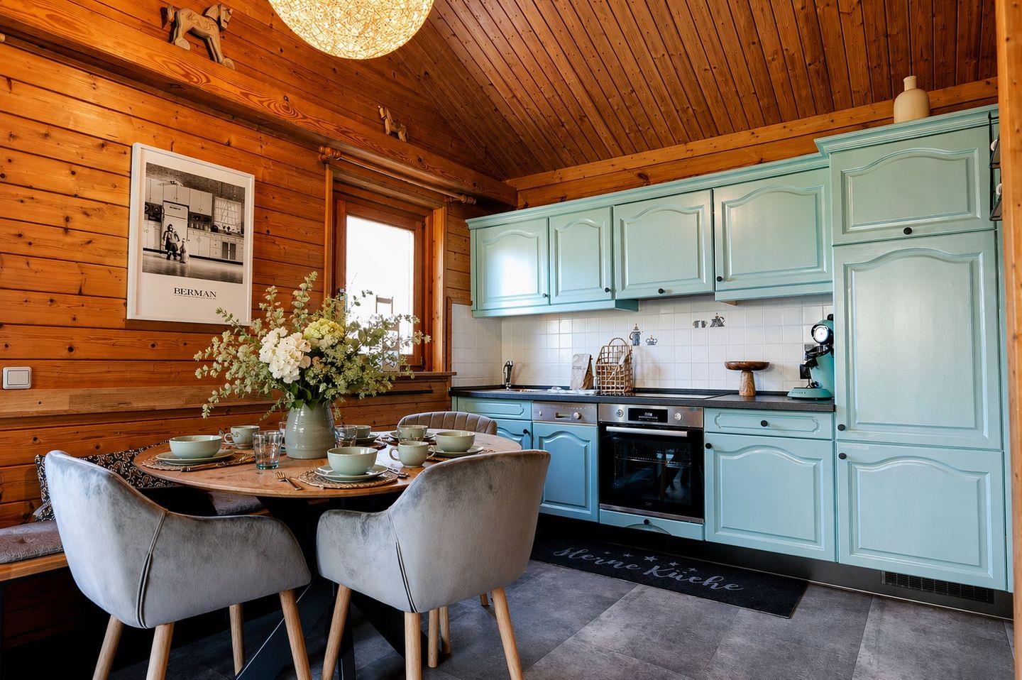 Das liebevoll und modern eingerichtete ebenerdige Ferienhaus bietet dir großzügigen Wohnkomfort und eine entspannte Atmosphäre. Der helle Wohnbereich mit hochwertiger Couchgarnitur lädt zum Verweilen ein, während der offene Essbereich mit angrenzender, komplett ausgestatteter Küche ideale Voraussetzungen für gemeinsame Kochabende schafft. Die neu aufgefrischte Küche lässt keine Wünsche offen und sorgt dafür, dass du dich vom ersten Moment an wie zu Hause fühlst.