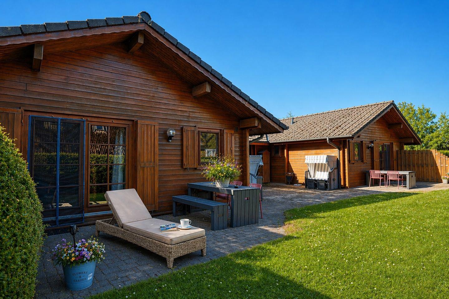 Modernes Ferienhaus Küstenhaus Kormoran in Cuxhaven Berensch mit Garten und Südterrasse, ideal für Natur- und Familienurlaub an der Nordsee.