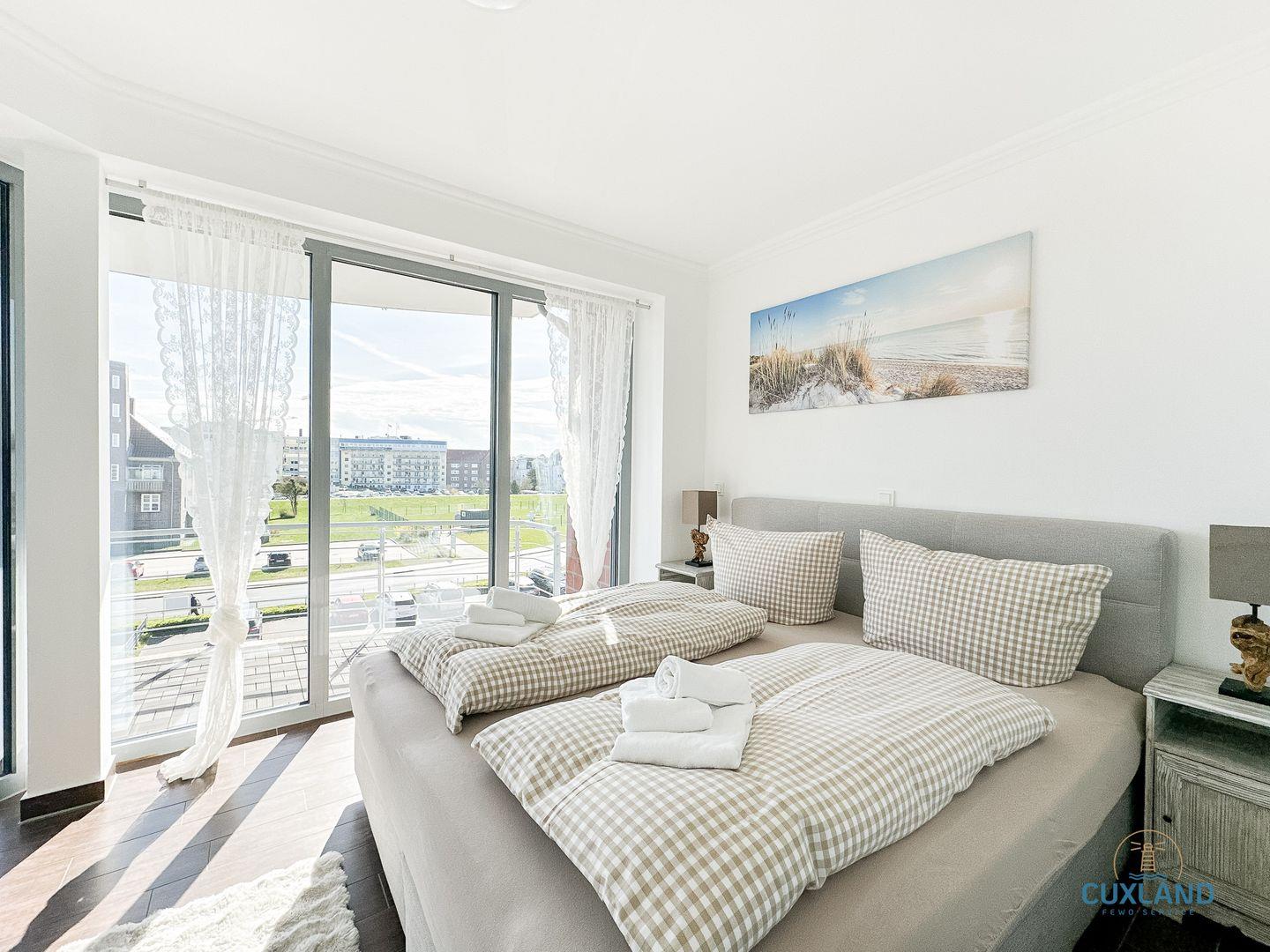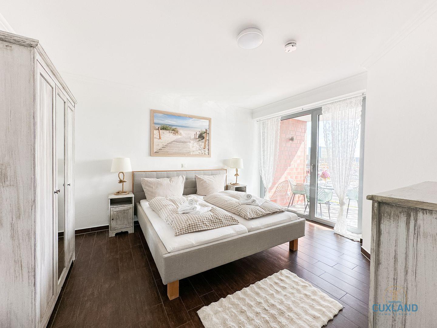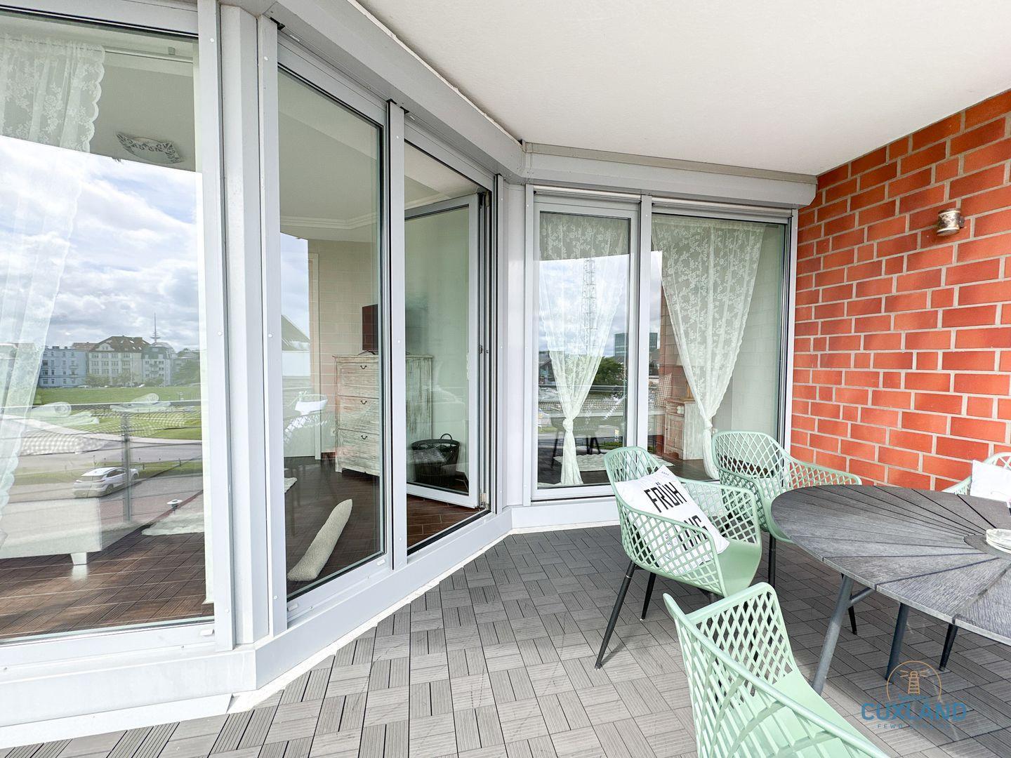 Exklusive Ferienwohnung in Cuxhaven mit Meerblick, zwei Balkonen und hochwertiger Ausstattung direkt am Yachthafen.