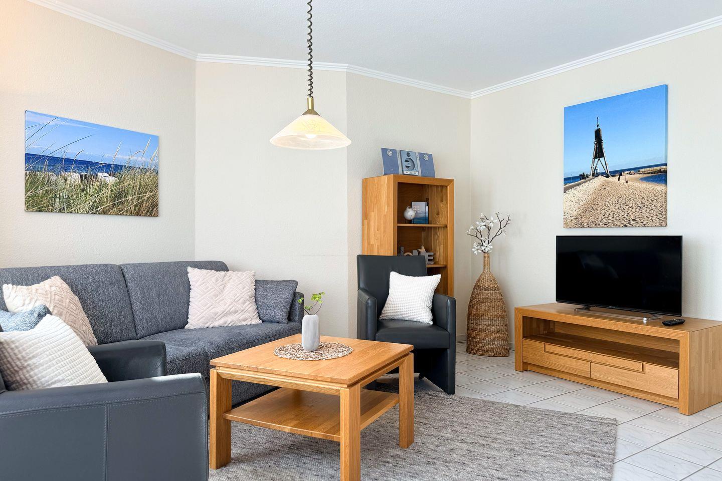 Residenz Meeresbrandung, Haus 1: Diese Ferienwohnung mit Meerblick für 2-4 Personen in der 1. Etage mit überdachtem Balkon ist geschmackvoll möbliert und gemütlich eingerichtet.
