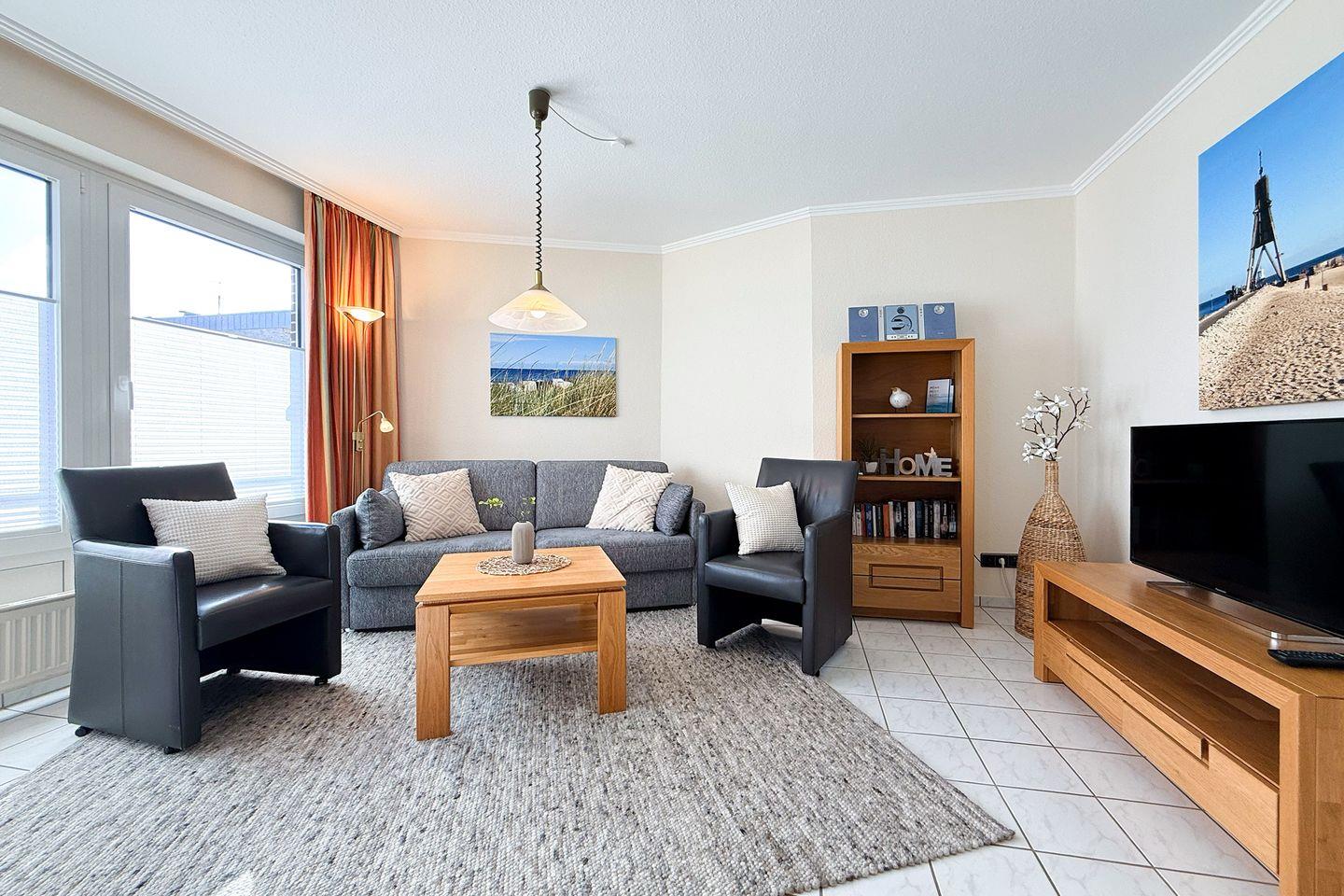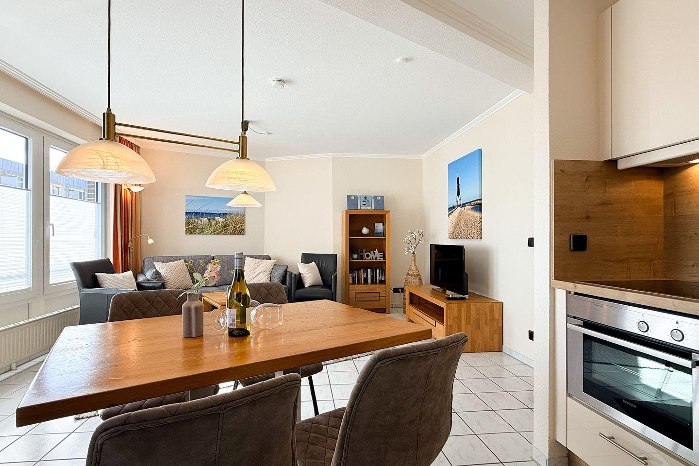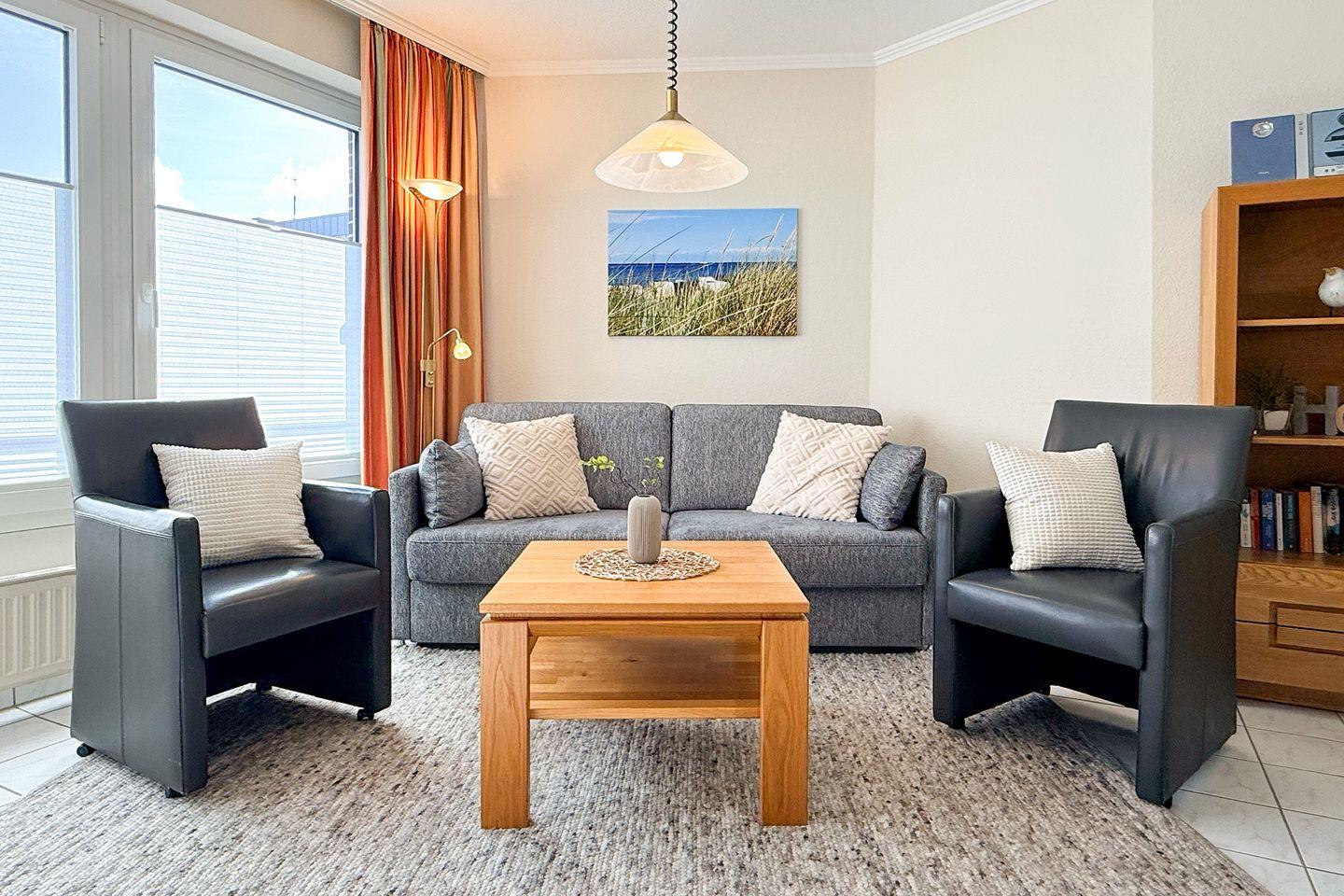 Diese Wohnung befindet sich in Haus 1 der Residenz Meeresbrandung. Bitte beachten Sie, dass zur Zeit (bis voraussichtlich 17.04.2026) in Haus 2 der Ferienanlage die Fenster erneuert werden. Hier kann es zu Baulärm kommen.