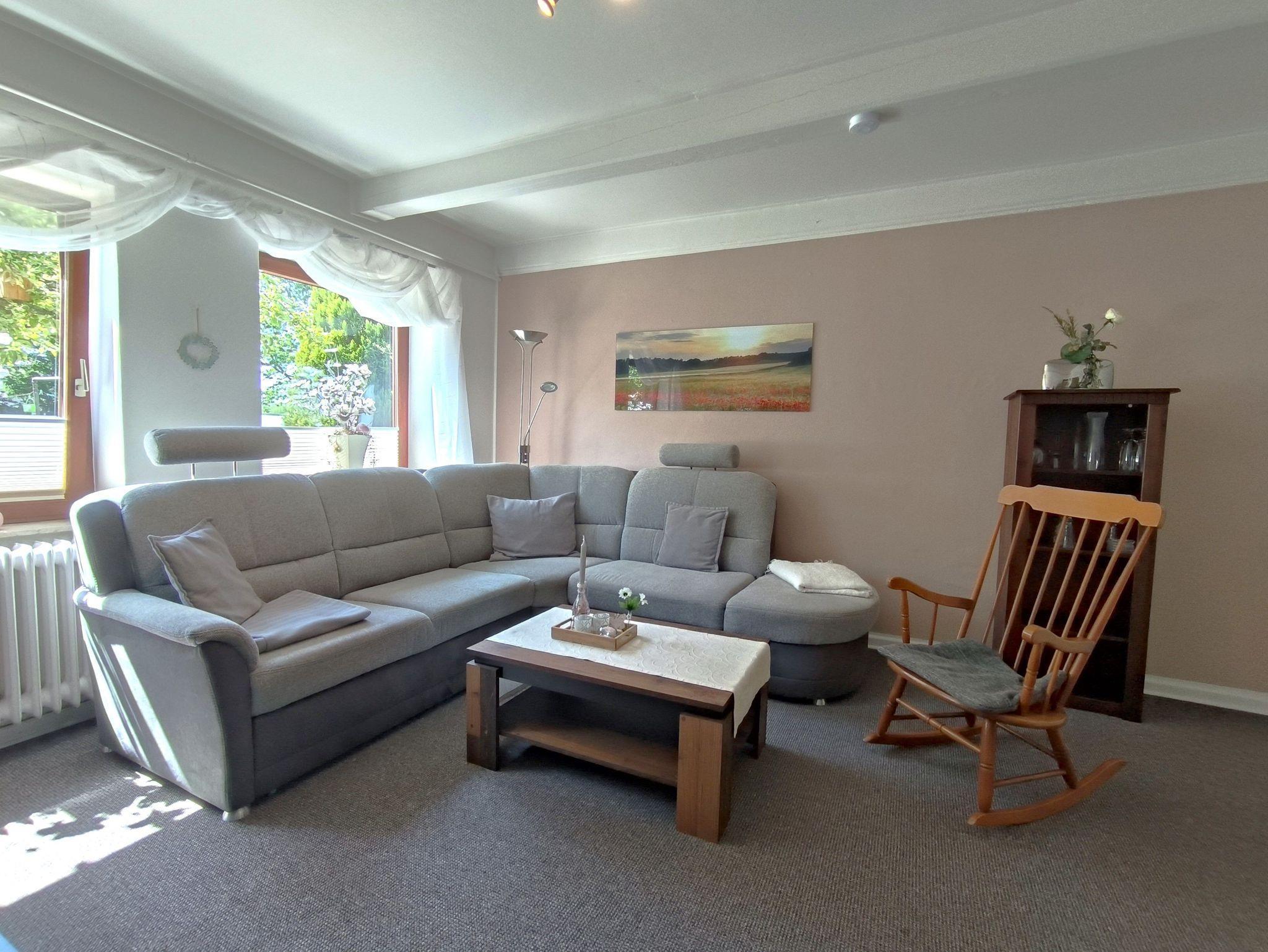 In der Ferienwohnung zwischen den Meeren können Sie sich rundum wohlfühlen: sie ist liebevoll eingerichtet und vielseitig ausgestattet: in allen drei Schlafzimmern finden Sie je einen eigenen Fernseher, in zwei Zimmern einen Lesessel und in einem Zimmer einen Schreibtisch. In allen Schlafzimmern gibt es Insektenschutz an den Fenstern und Verdunklungsmöglichkeiten. Neben dem frisch renovierten Bad mit ebenerdiger Dusche, gibt es noch einen kleinen Flur mit zusätzlichem Waschbecken und einer Waschmaschine. Die Küche ist klein, aber fein und vollumfänglich ausgestattet. Im großen Wohnzimmer kann man es sich auf dem großen Sofa bequem machen und an Schlechtwettertagen vor dem Kamin entspannen. Die kleinen Gäste des Hauses finden im Wohnzimmer einige Gesellschaftsspiele und Lesebücher.