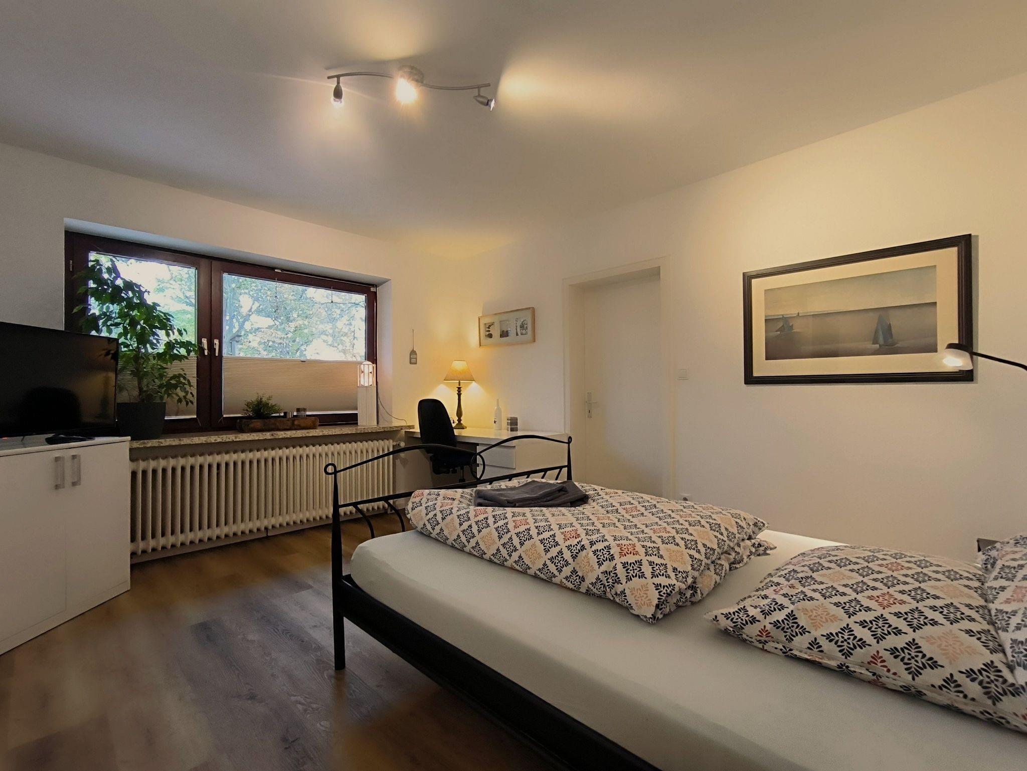 Die Ferienwohnung liegt im Erdgeschoss eines Anbaus von einem großen Einfamilienhaus und besteht aus einem gemütlichen Wohnzimmer mit Kamin und Flachbild-TV, einer Küche mit Esstisch, einem modernen Badezimmer mit großer, ebenerdiger Dusche sowie drei Schlafzimmern (1 x Einzelbett + TV, 1 x Doppelbett + TV, 1 x französisches Bett + TV). Kostenfreie Parkplätze gibt es direkt vor dem Haus und die Nutzung der Waschmaschine ist möglich. Bettwäsche und Handtücher sind im Preis inbegriffen, für die Endreinigung wird eine Gebühr berechnet. Eine Aufbettung für eine weitere Person ist auf Anfrage möglich. Eine abschließbare Fahrradunterstellung ist vorhanden.