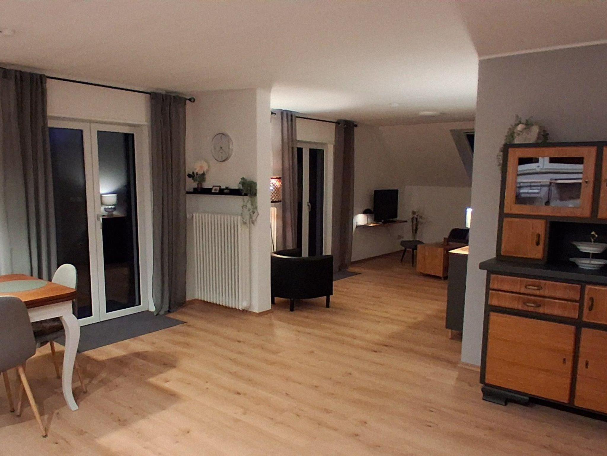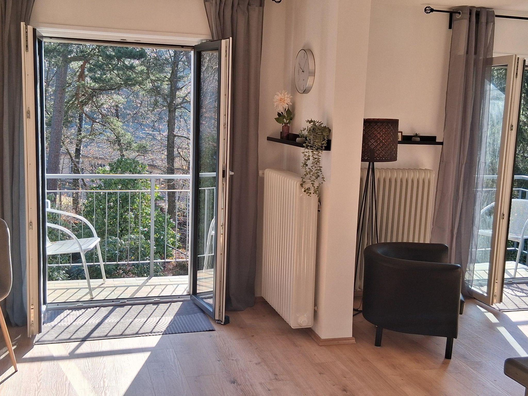 Unsere helle Ferienwohnung im oberen Teil des Hauses bietet gehobene, moderne Ausstattung und einen Balkon auf der Sonnenseite von Dörrenbach. Freuen Sie sich auf ein neues Bad mit begehbarer Dusche, eine ruhige Lage direkt am Waldrand und ohne Durchgangsverkehr. Ideal für erholsame Tage in idyllischer Umgebung, mit direktem Zugang zum Wald für entspannte Spaziergänge