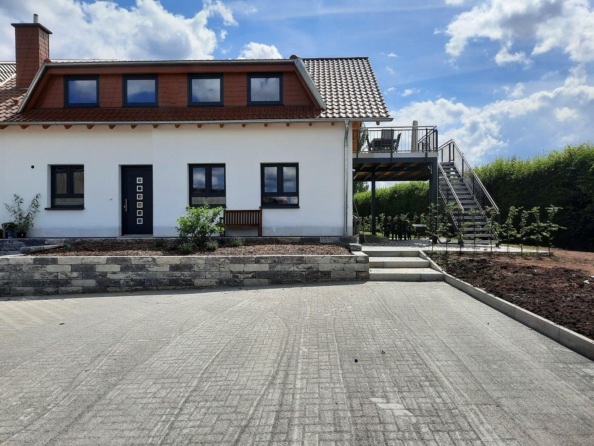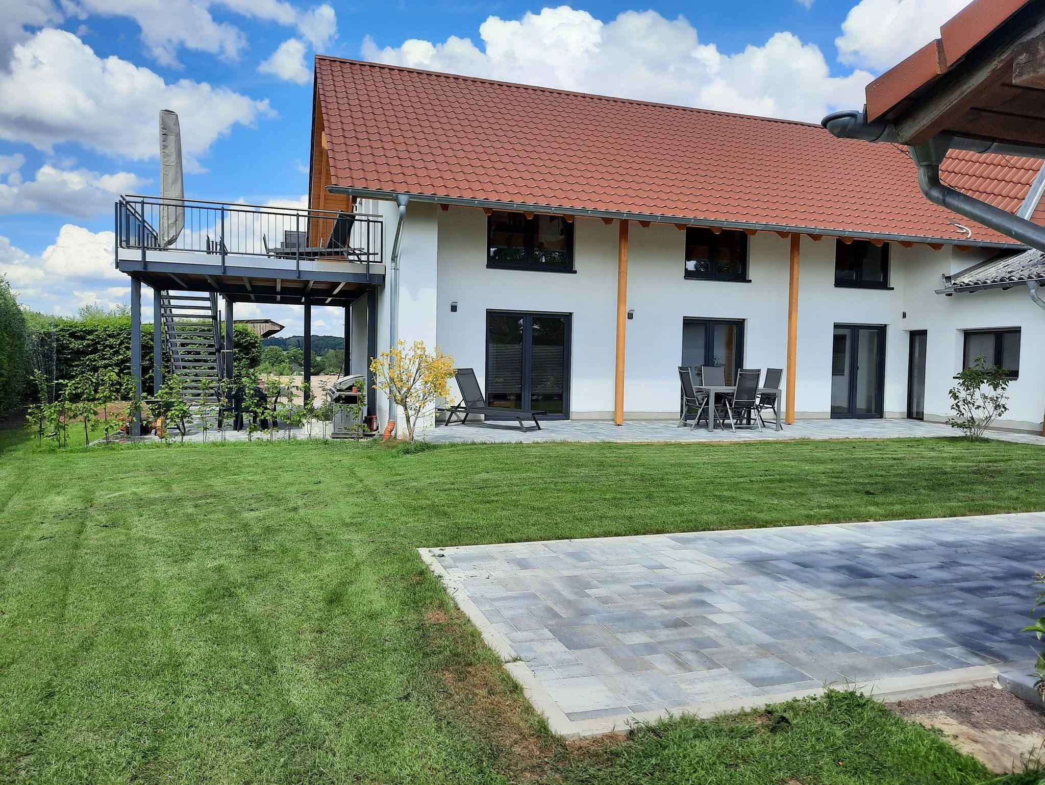Unsere familienfreundliche Erdgeschosswohnung mit 88 m² wurde liebevoll und modern eingerichtet und beinhaltet eine vollwertig ausgestattete, offene Küche mit großem Essbereich. Im gemütlichen Wohnbereich befindet sich eine moderne Wohnlandschaft auf der alle Familienmitglieder Platz finden. Die beiden gleichwertigen Schlafzimmer sind ausgestattet mit je einem Doppelbett. Ein Kleinkinderbettchen steht auf Wunsch bereit. Das Badezimmer, mit Tageslicht, ist freundlich und geräumig mit einer ebenerdigen Dusche. In der gesamten Wohnung nutzen Sie W-LAN und Fußbodenheizung, elektrische Rollläden in Schlaf- und Wohnräumen. Im Kellergeschoss befindet sich ein Hauswirtschaftsraum für beide Wohnungen. Der Zugang zur wohnungseigenen, möbilierten Sonnenterrasse mit Liegewiese ist von Wohn- und beiden Schlafräumen gegeben.