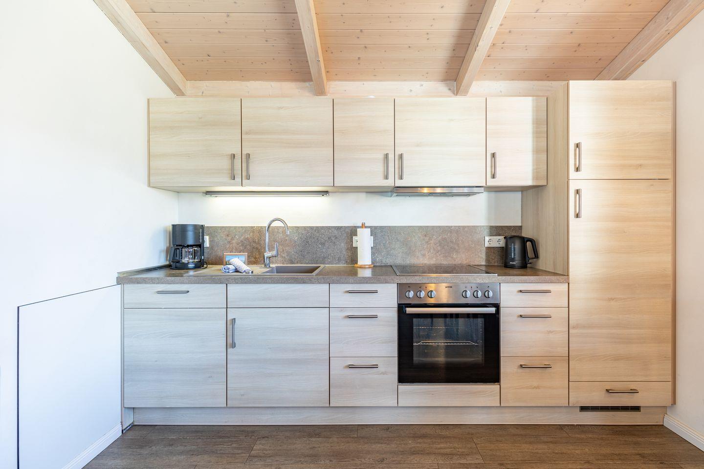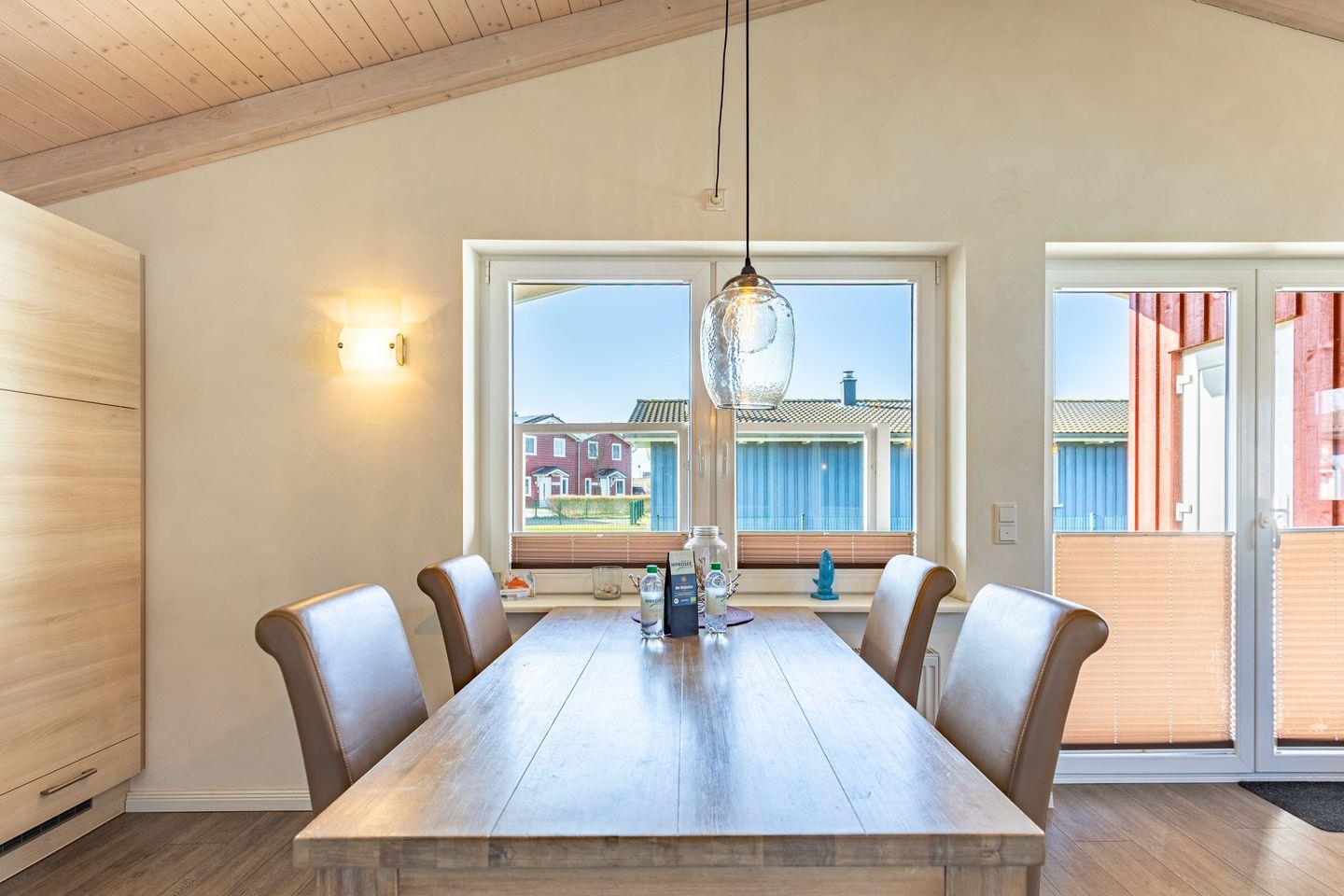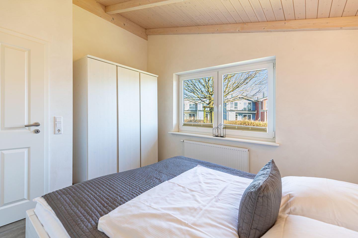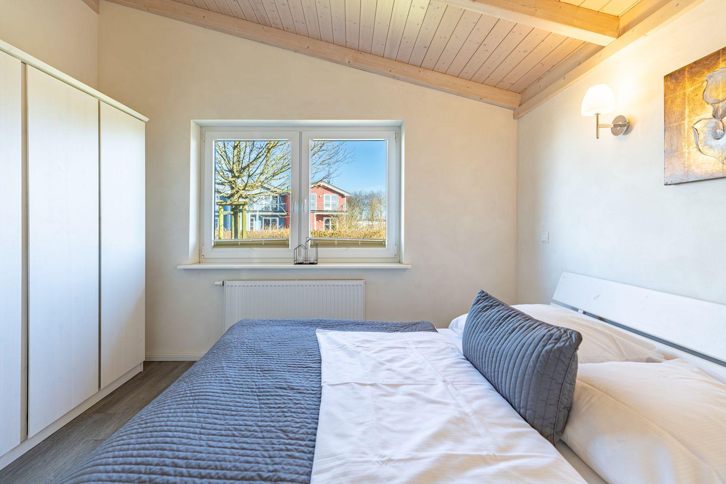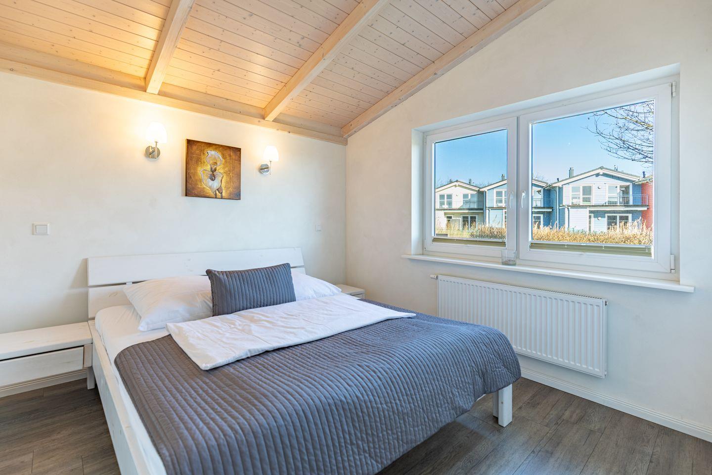 Das 85 qm große Ferienhaus ist modern und exklusiv im skandinavischen Charme eingerichtet. Die zwei Schlafzimmer mit jeweils einen Komfort-Doppelbett (180 x 200 cm) bieten Platz für bis zu vier Personen. Das gemütliche Wohnzimmer ist mit einem Smart-TV ausgestattet. Der Kaminofen sorgt auch in der kälteren Jahreszeit für behagliche Stunden. Die offene Küche bietet Ihnen eine exklusive und umfangreiche Ausstattung, die das Herz eines jeden Hobbykochs höher schlagen lässt: Ceranfeld mit 4 Kochplatten, Backofen, Kühlschrank mit ***Gefrierfach, Mikrowelle, Geschirrspüler, Filterkaffeemaschine uvm. Das Badezimmer lässt keine Wünsche offen: zwei Waschbecken, eine große Badewanne, eine ebenerdige Dusche und eine schöne Sauna geben Ihrem Urlaub den richtigen Rahmen. Das Ferienhaus verfügt über ein zusätzliches WC.Auf der überdachten, windgeschützten Terrasse können Sie auf bequemen Gartenstühlen, den Sonnenliegen oder im Strandkorb die Sonne genießen.