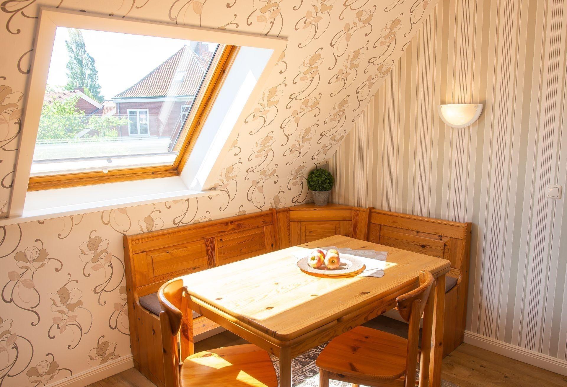 Schöne vier Zimmer Wohnung im 1. OG eines Einfamilienhauses mit kleinem Westbalkon in strandnaher Wohnlage. Die Wohnung verfügt über ein Schlafzimmer mit Etagenbett und ein zweites Schlafzimmer mit Doppelbett, separate Küche und Esszimmer. Duschbad!