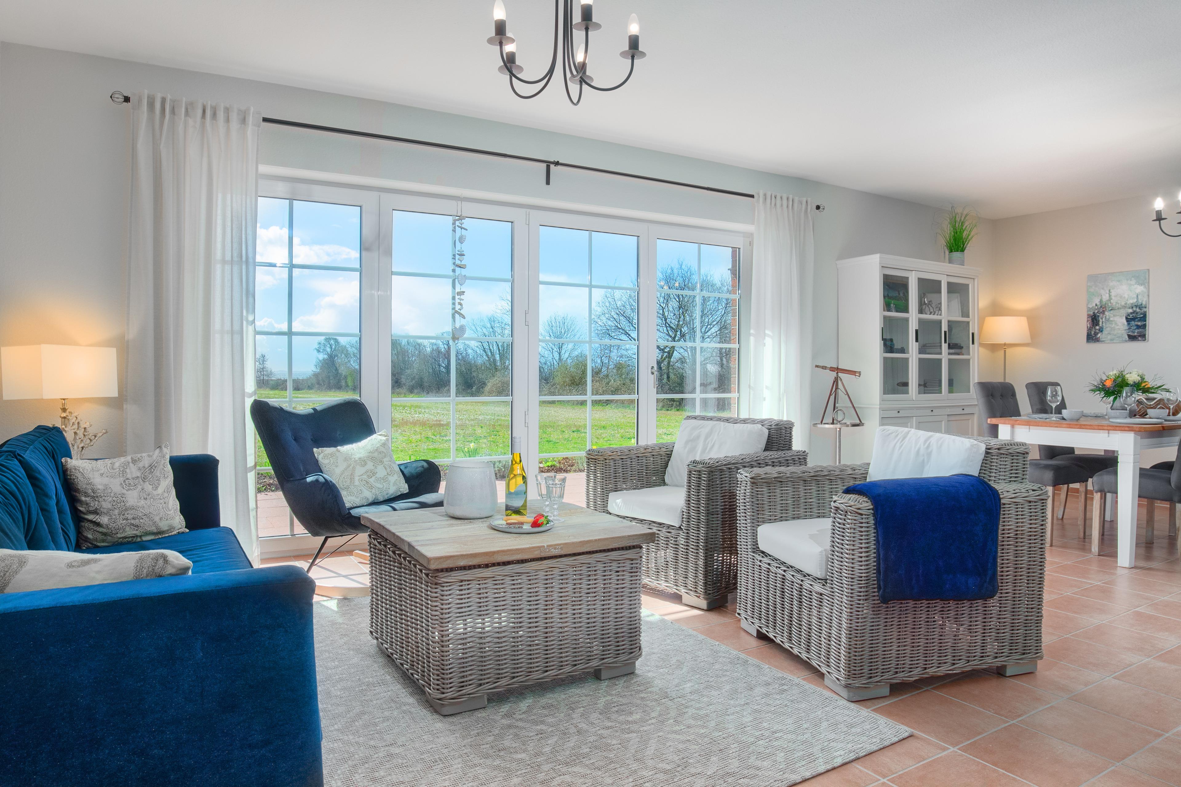 Großzügige Erdgeschoss-Ferienwohnung mit Meerblick, Terrasse und Garten in Dahme, nahe Ostsee und Leuchtturm.