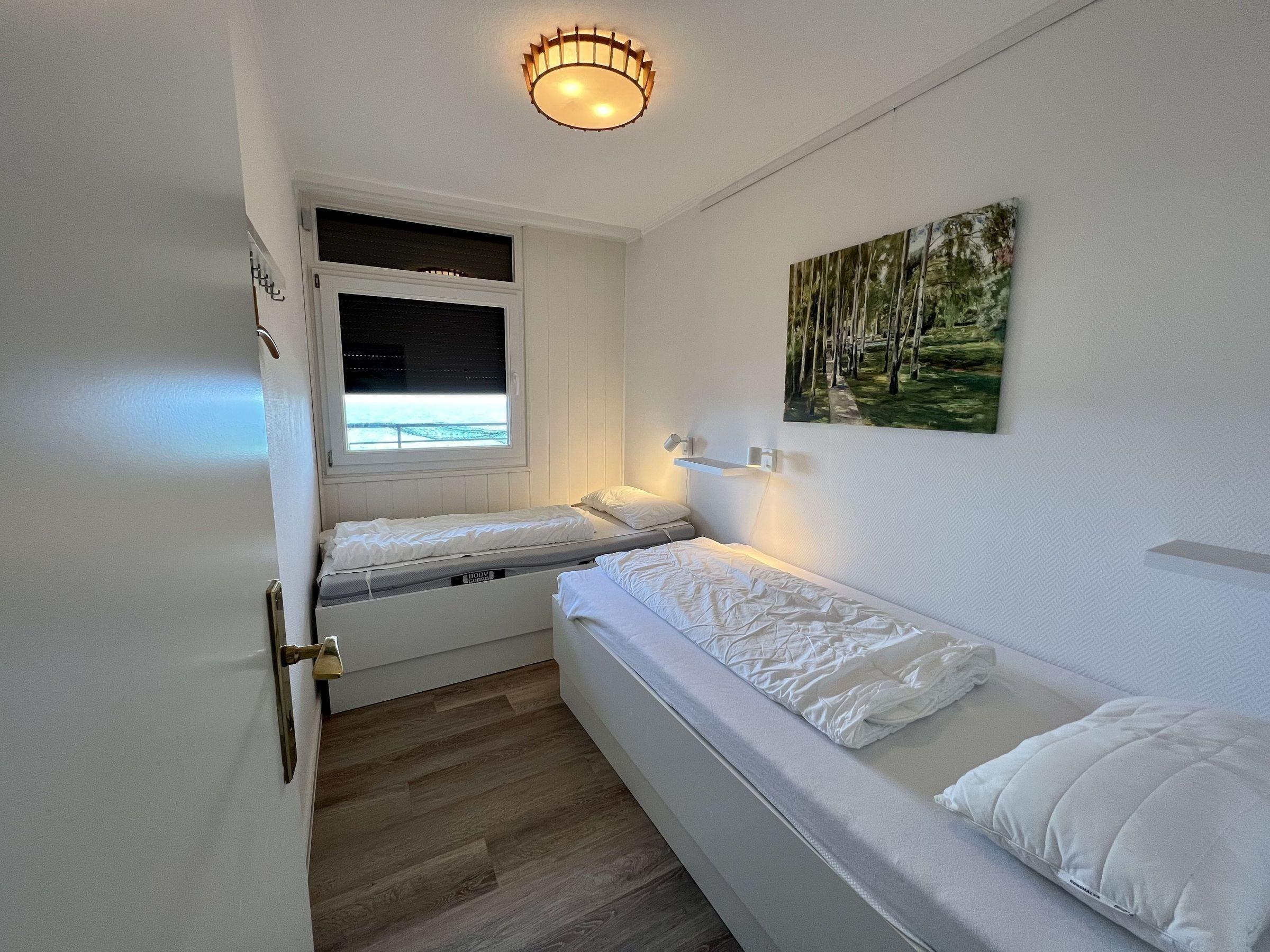 Neben dem kombinierten Wohn-Schlafzimmer mit einer gemütlichen Sitzgruppe und einem Schlafsofa gibt es ein extra Schlafzimmer mit zwei einzelnen Betten. Die Küche ist mit allem ausgestattet, was Sie in Ihrem Urlaub benötigen. Das Badezimmer verfügt über Dusche und WC.