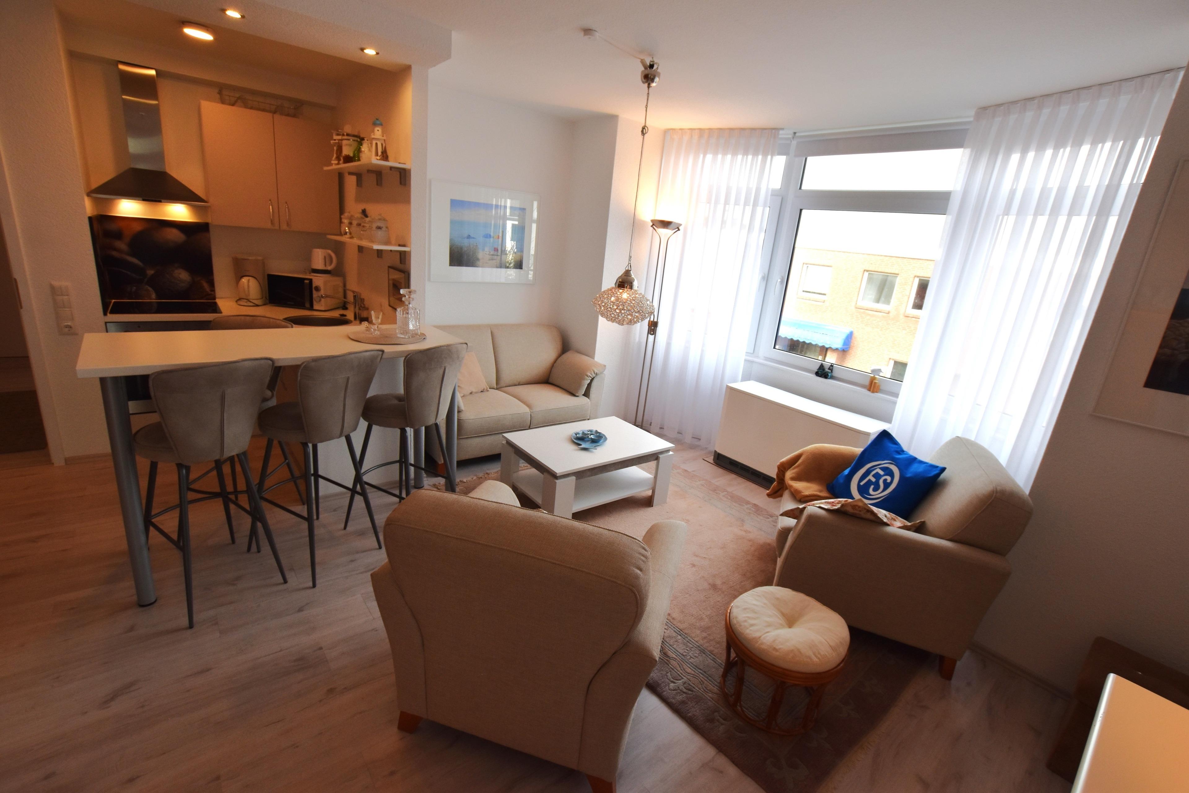 Wir wünschen Ihnen schon jetzt einen schönen Urlaub in Dahme an der Ostsee. Hier erwarten Sie auf ca. 40m² eine Ferienwohnung mit W-LAN, einem Schlafzimmer, einem Duschbad, einem Wohn-/Esszimmer mit Ethanolkamin, offener Küche und direktem Zugang zum Balkon für bis zu 3 Personen.