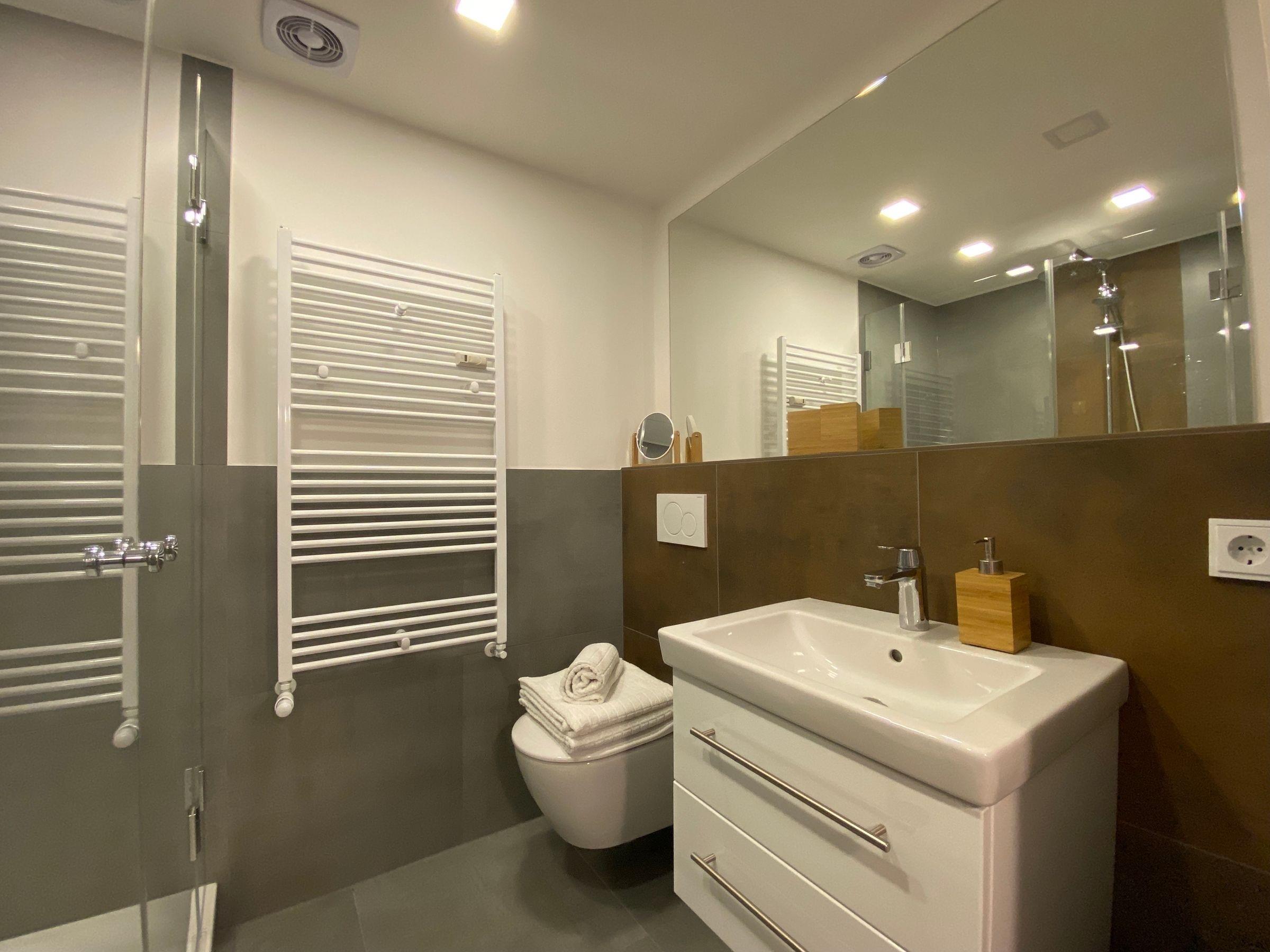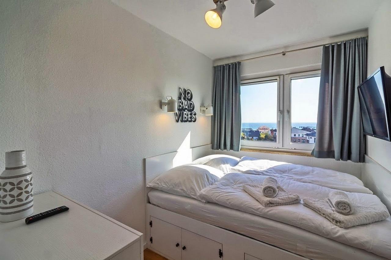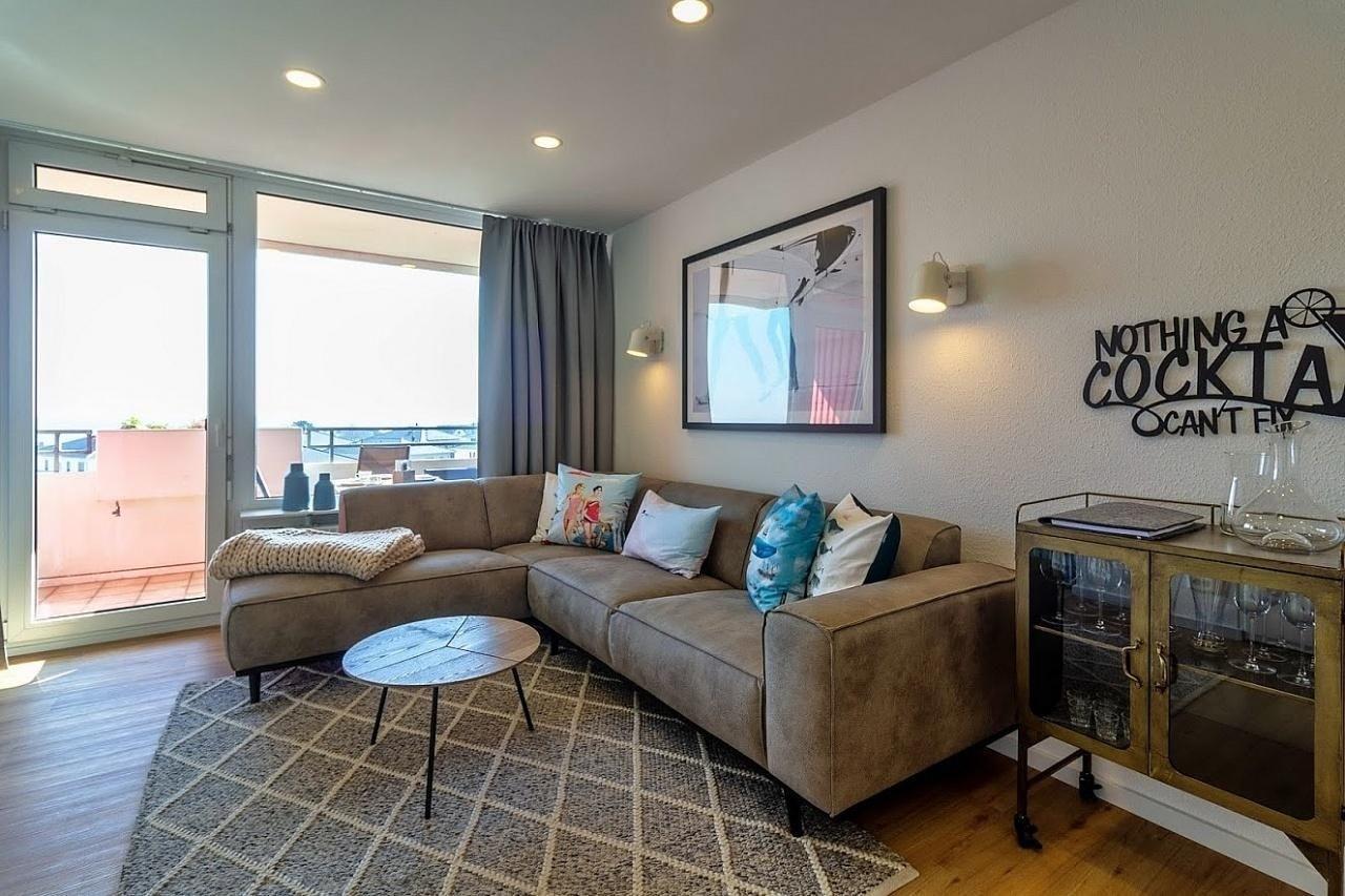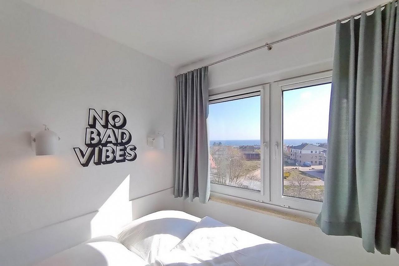 Diese Wohnung hat so einiges zu bieten: Die gesamte Einrichtung der Wohnung ist hochwertig und perfekt aufeinander abgestimmt. Die Schlafmöglichkeiten bestehen aus einem komfortablen Boxspring-Doppelbett (180x200 cm) auf einer Podest-Konstruktion im Wohnzimmer und aus einem vollwertigen Doppelbett (140x200 cm) im separaten Schlafzimmer. Die deckenhohen Schränke rechts und links neben dem Doppelbett im Wohnbereich dienen sowohl als Nachtschränke als auch als Kleiderschränke für Ihre Urlaubsgarderobe. Der Wohnbereich verfügt weiterhin über eine großzügige Polsterlandschaft, eine Retro-Bar aus Messing, einen Flachbildfernseher und Zugang zum überdachten, möblierten Balkon mit gemütlicher Sitzecke. In der separaten, voll ausgestatteten Küche stehen Ihnen z. B. ein Geschirrspüler, ein Backofen in komfortabler Arbeitshöhe und eine Kaffee-Kapselmaschine zur Verfügung. Ein runder Esstisch und eine Schiebetür im rustikalen Barn-Style zum separaten Schlafzimmer sorgen für ein offenes Wohngefühl. Das Highlight im innenliegenden Badezimmer sind die große, barrierearme Dusche (160x80 cm) mit Regendusche sowie der große Spiegel über die gesamte Wandbreite. Das Badezimmer wurde mit einem hochwertigen Villeroy & Boch WC sowie einem Waschtisch inklusive Unterschrank ausgestattet. Der WLAN-Anschluss ist selbstverständlich inklusive.