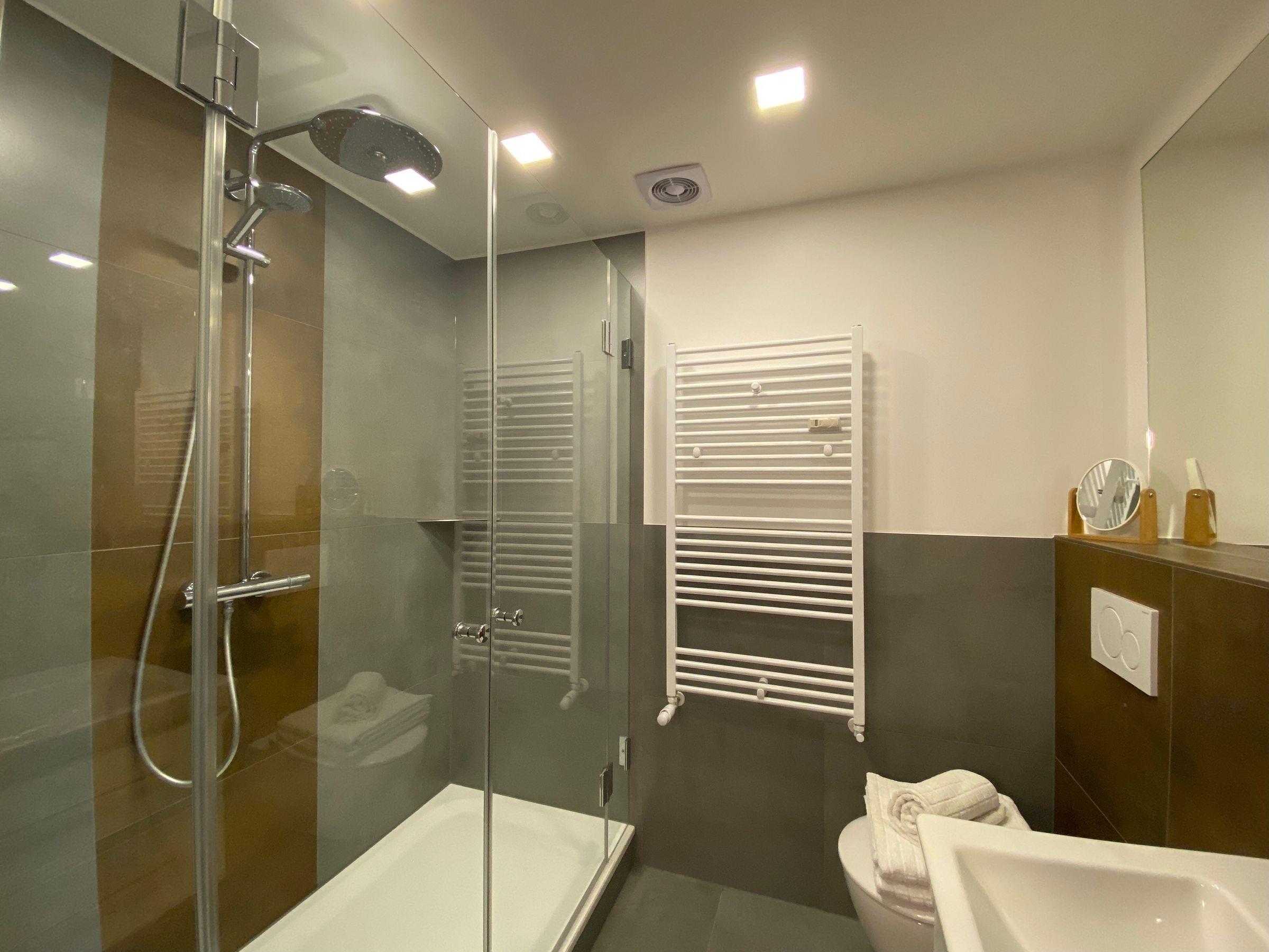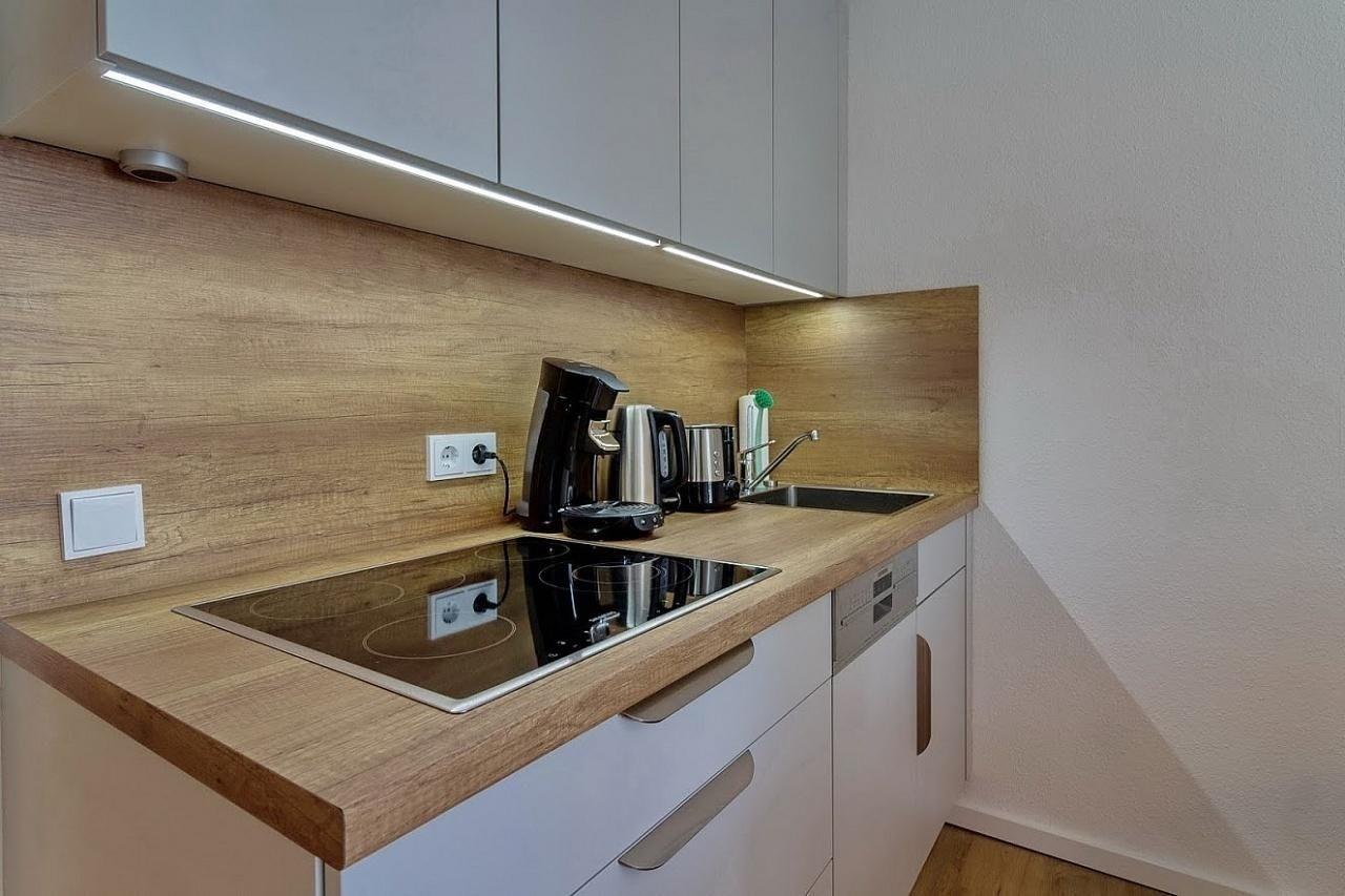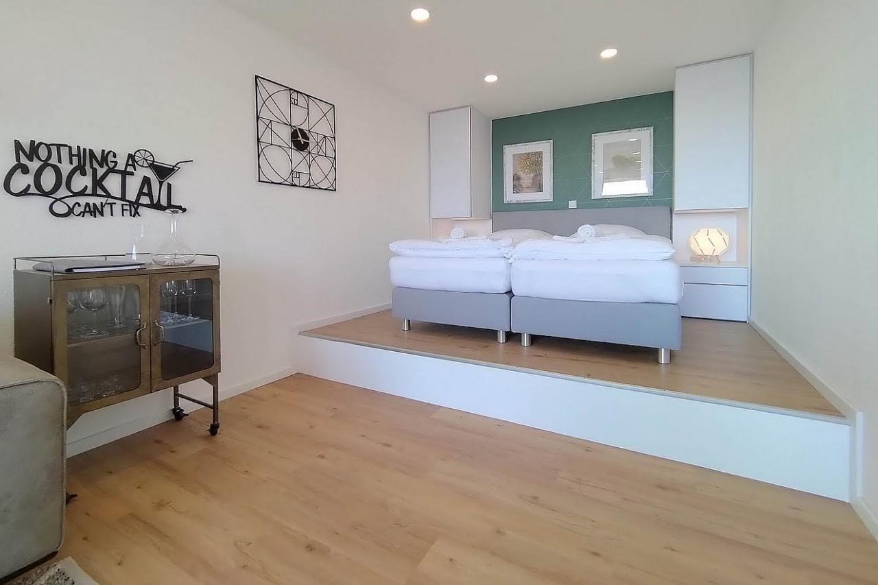 Diese Wohnung hat so einiges zu bieten: Die gesamte Einrichtung der Wohnung ist hochwertig und perfekt aufeinander abgestimmt. Die Schlafmöglichkeiten bestehen aus einem komfortablen Boxspring-Doppelbett (180x200 cm) auf einer Podest-Konstruktion im Wohnzimmer und aus einem vollwertigen Doppelbett (140x200 cm) im separaten Schlafzimmer. Die deckenhohen Schränke rechts und links neben dem Doppelbett im Wohnbereich dienen sowohl als Nachtschränke als auch als Kleiderschränke für Ihre Urlaubsgarderobe. Der Wohnbereich verfügt weiterhin über eine großzügige Polsterlandschaft, eine Retro-Bar aus Messing, einen Flachbildfernseher und Zugang zum überdachten, möblierten Balkon mit gemütlicher Sitzecke. In der separaten, voll ausgestatteten Küche stehen Ihnen z. B. ein Geschirrspüler, ein Backofen in komfortabler Arbeitshöhe und eine Kaffee-Kapselmaschine zur Verfügung. Ein runder Esstisch und eine Schiebetür im rustikalen Barn-Style zum separaten Schlafzimmer sorgen für ein offenes Wohngefühl. Das Highlight im innenliegenden Badezimmer sind die große, barrierearme Dusche (160x80 cm) mit Regendusche sowie der große Spiegel über die gesamte Wandbreite. Das Badezimmer wurde mit einem hochwertigen Villeroy & Boch WC sowie einem Waschtisch inklusive Unterschrank ausgestattet. Der WLAN-Anschluss ist selbstverständlich inklusive.