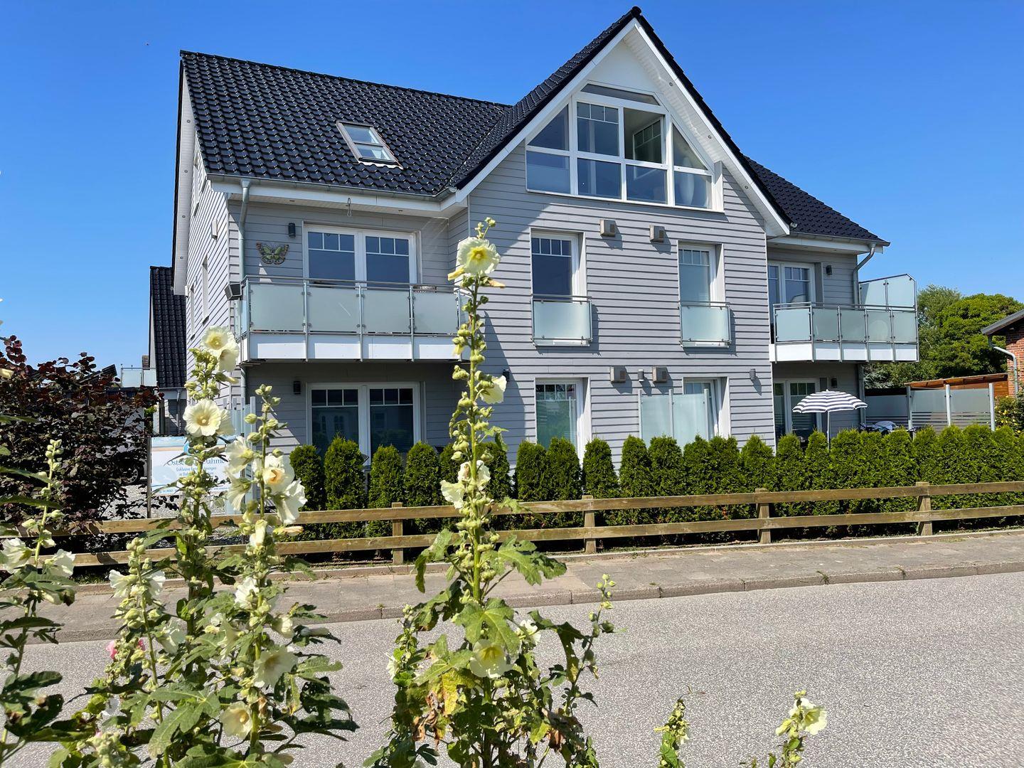 Modernes 5-Sterne-Stranddomizil Poel in Dahme mit Balkon und eingeschränktem Meerblick, nur 80 Meter vom Strand entfernt.