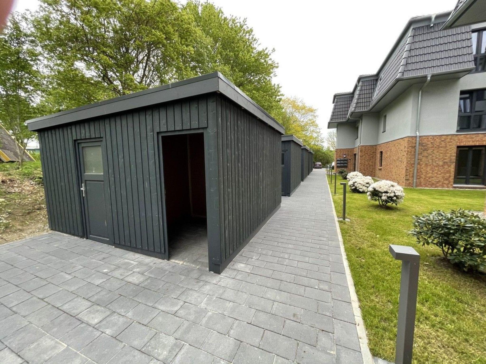 Der abschließbare Schuppen ist besonders für Ihre Fahrräder und Strandutensilien geeignet.