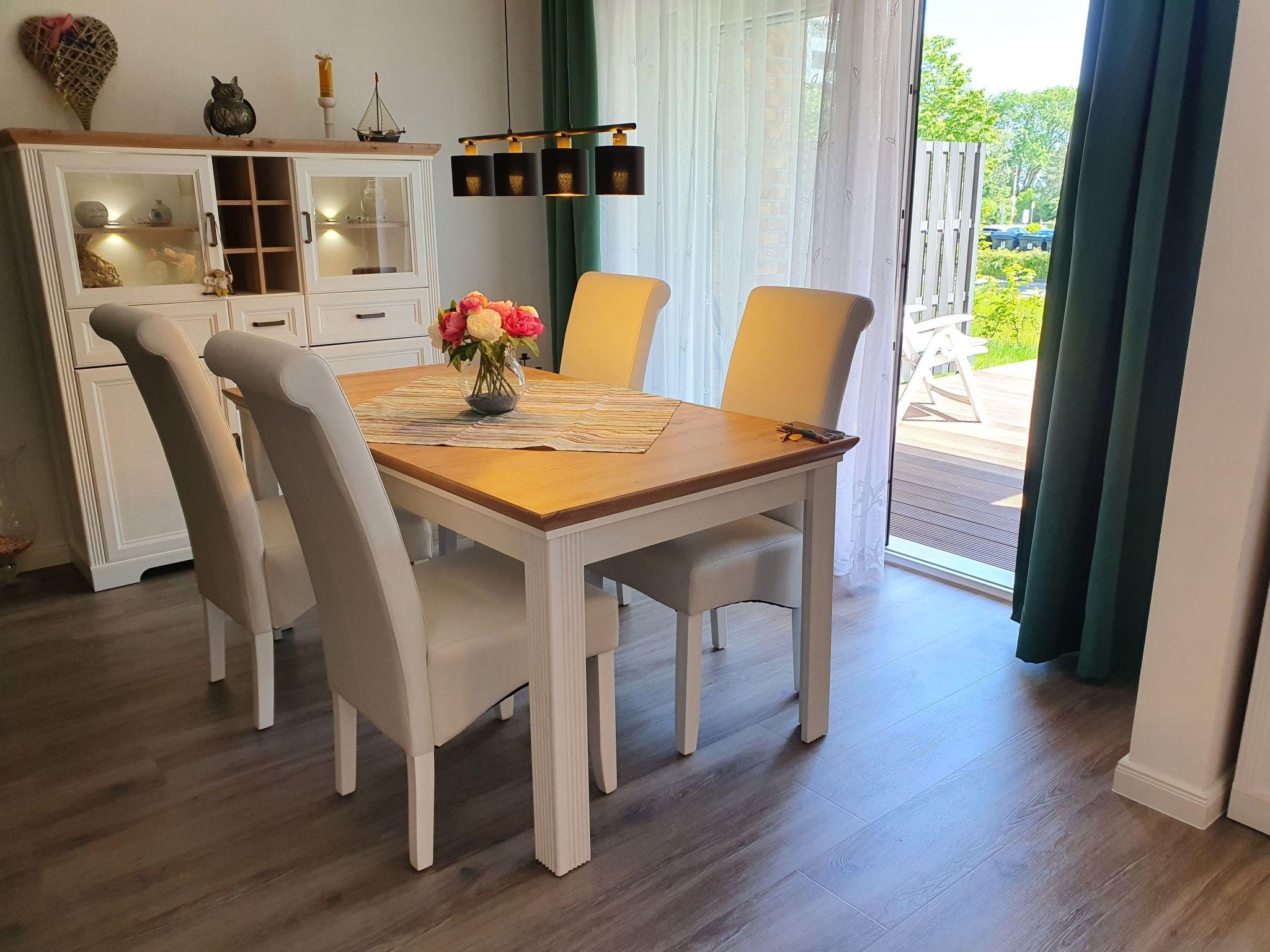Die lichtdurchflutete neu erbaute Ferienwohnung „AnkerZeit“ liegt im Seeuferweg von Damp, schräg gegenüber vom Yachthafen. Die Wohnung mit moderner offener Innenarchitektur erstreckt sich über ca. 68qm, verfügt über eine Fußbodenheizung und ist für bis zu 4 Personen geeignet. Sie ist barrierearm. Sonnenbaden oder lange Strandspaziergänge, Fahrradtouren oder Besichtigungen in der Nähe laden Sie zu einem unvergesslichen Urlaub ein. Lassen Sie sich die Sonne auf den Bauch scheinen oder den Wind um die Nase wehen. Und dann machen Sie es sich in unserer neu erbauten Ferienwohnung gemütlich. Sie lieben das Kochen? Die Küche ist voll ausgestattet, so dass es Spaß macht, ein Menü zu zaubern. Sie geht über in den Wohnbereich mit gemütlicher Wohnlandschaft und großem Flat-TV, HiFi-Anlage und Bluetooth-Lautsprecher. Der Schlafbereich ist mit einem Boxspring-Doppelbett und einem großen Kleiderschrank für Ihre Urlaubsgarderobe ausgestattet und vom Essbereich optisch abgeteilt. Die Wohnlandschaft ist auch als großes Schlafsofa nutzbar, so dass 2 weitere Personen dort nächtigen können. Der Esstisch ist besonders groß, so dass auch Spieleabende zu viert prima möglich sind: Div. Spiele stehen Ihnen natürlich zur Verfügung. Das hochwertige Badezimmer verfügt über eine bodengleiche Dusche und u.a. einem Handtuchtrockner. Vom Wohnzimmer- und vom Essbereich aus gelangen Sie jeweils auf die große teilüberdachte Süd-Terrasse (28m²) mit gemütlichen Sitzmöbeln und Liegen. Zum abendlichen Wohlbehagen trägt der Elektrokamin bei. Zur weiteren Entspannung steht Ihnen eine große Infrarotsauna mit Aromatherapie zur Verfügung.