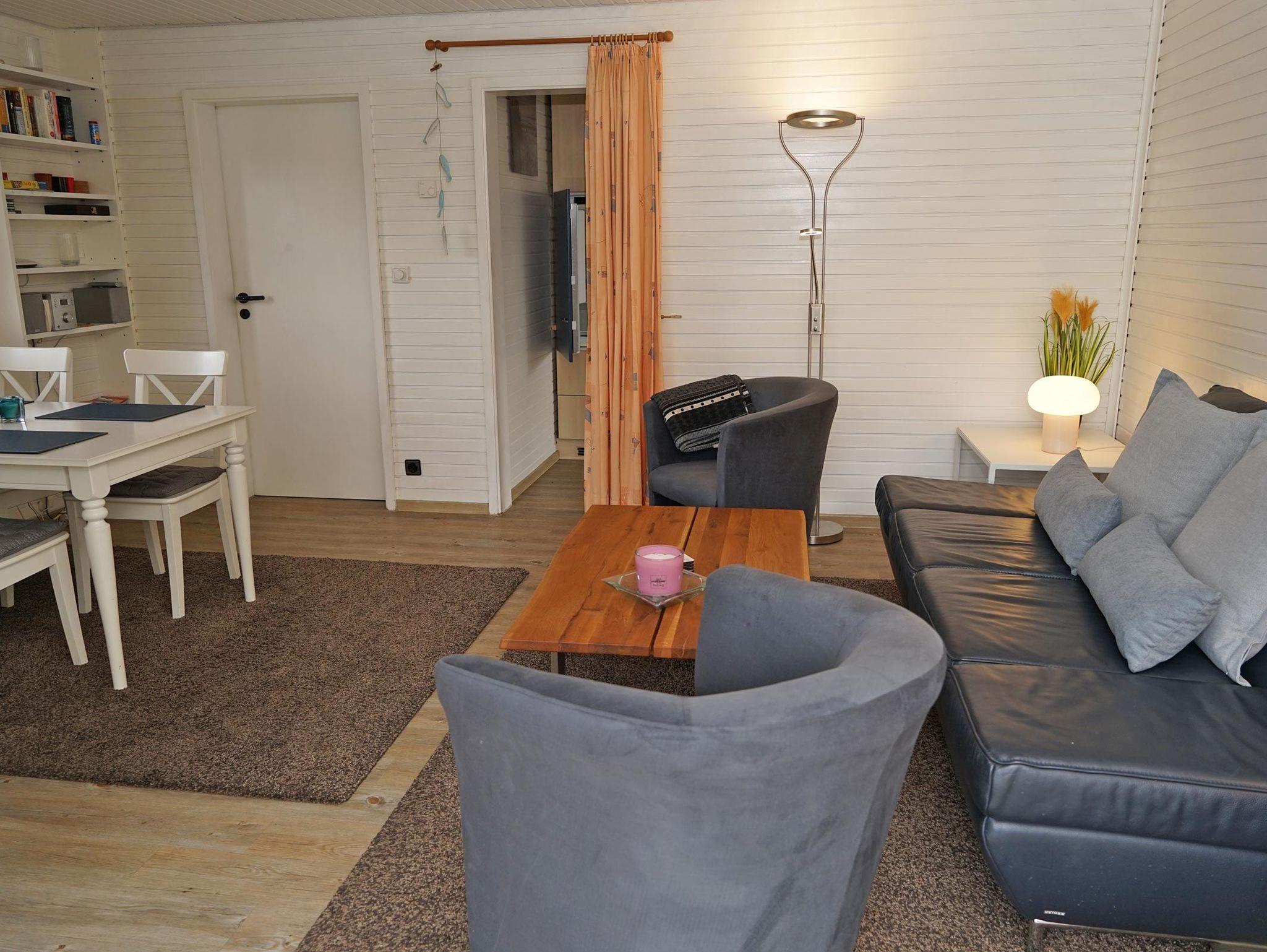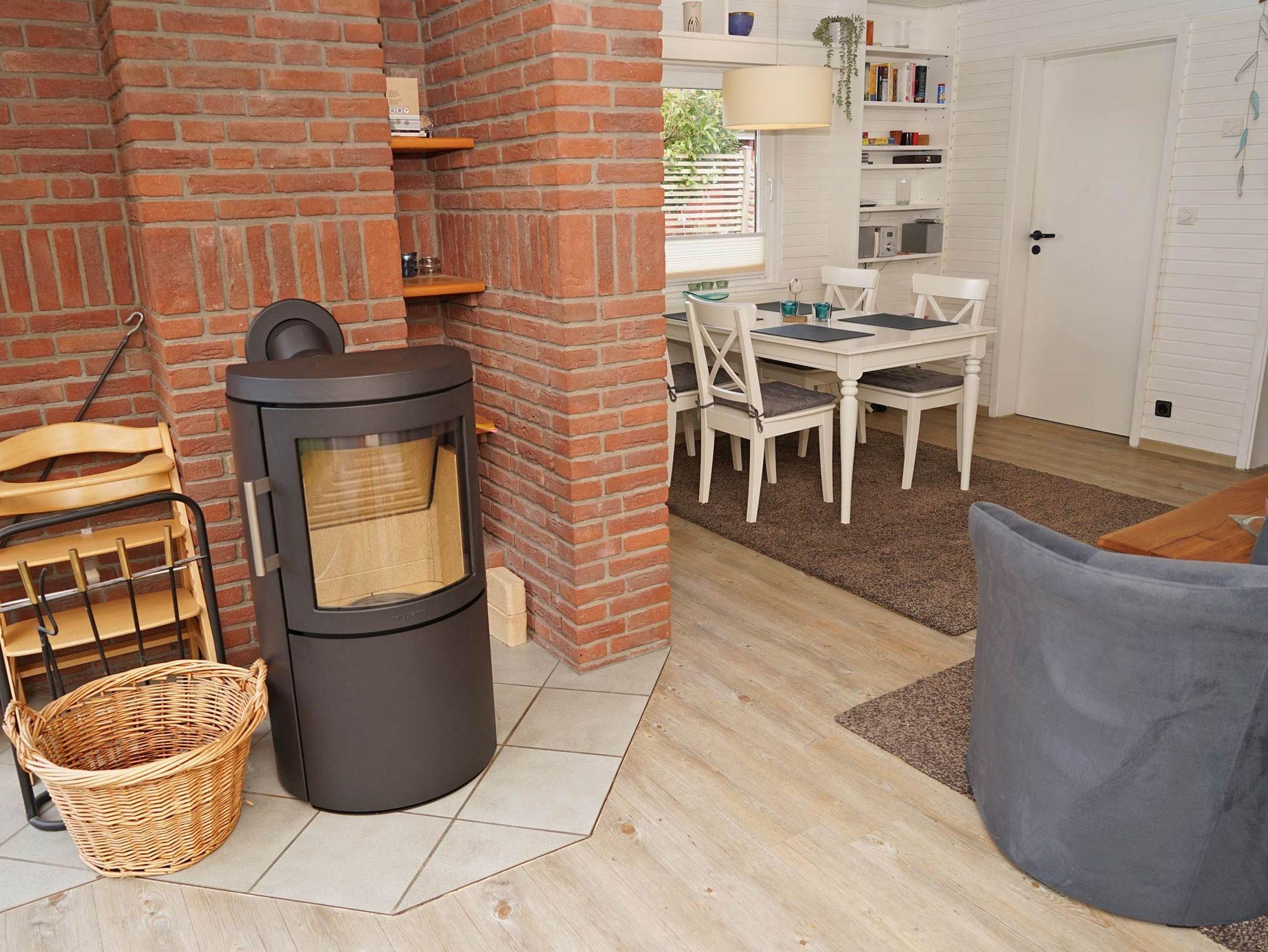 Wohnen auf einer Ebene. Zur Ausstattung gehört eine vollwertige Küche (mit Geschirrspüler und Waschmaschine), 2 getrennte Schlafzimmer (in einem Schlafzimmer befindet sich ein Etagenbett für 2 Personen), Flur, Bad mit Dusche und Wohnzimmer mit Essecke. Der Kamin im Wohnzimmer steht den Gästen zur Verfügung.