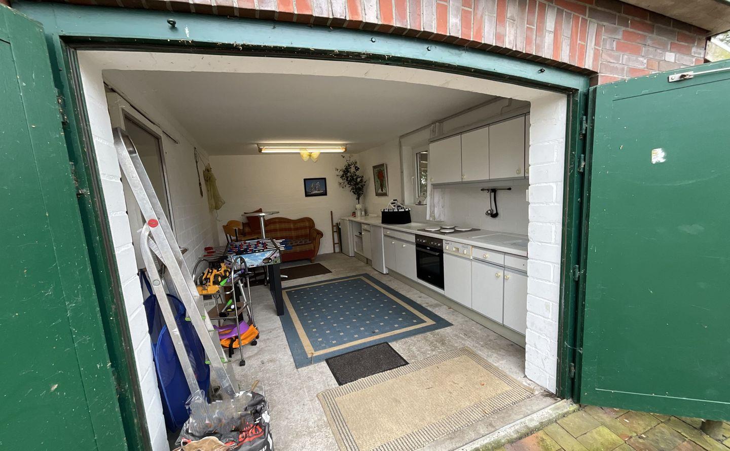 Im Außenbereich genießen Sie Garten, Liegewiese, Terrasse und Gartenmöbel.. Für gesellige Stunden steht ein Kohlegrill bereit; zusätzlich bietet eine Außenküche weitere Möglichkeiten zum Zubereiten und Genießen im Freien.