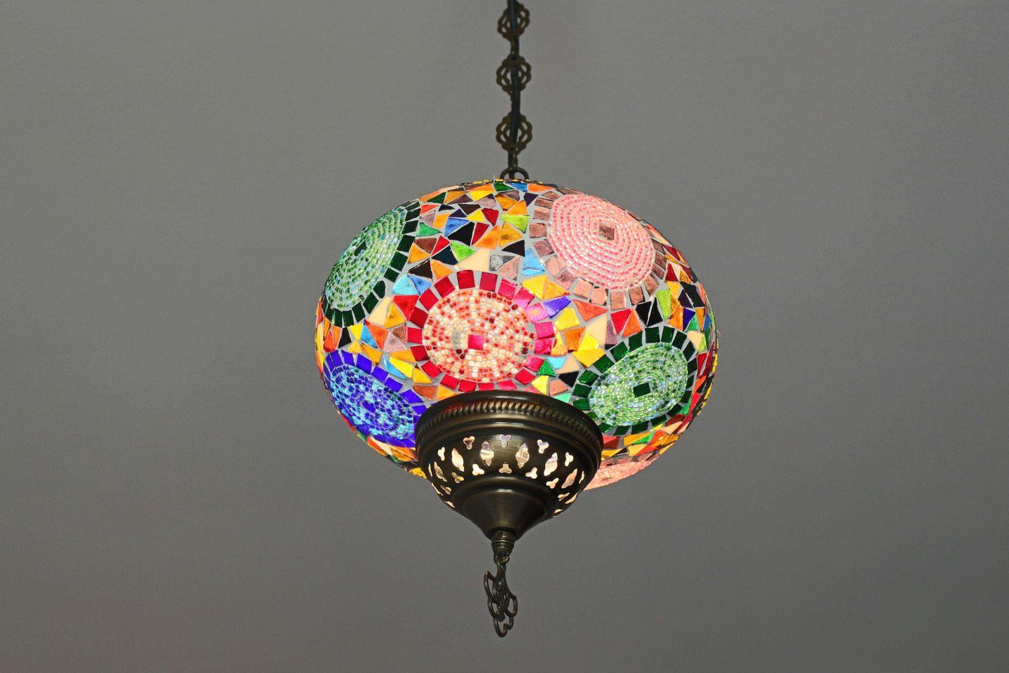 Das „Orientalische Zimmer“ bietet ein außergewöhnlich gemütliches Boxspringbett sowie einen entspannten Blick auf den Fernseher. Dunkle, ruhige Farben und in Kombination mit einer bunten Mosaiklampe schaffen eine warme, behagliche Atmosphäre. Selbstverständlich stehen auch hier Leselampen für das Entspannen mit einem guten Buch bereit.