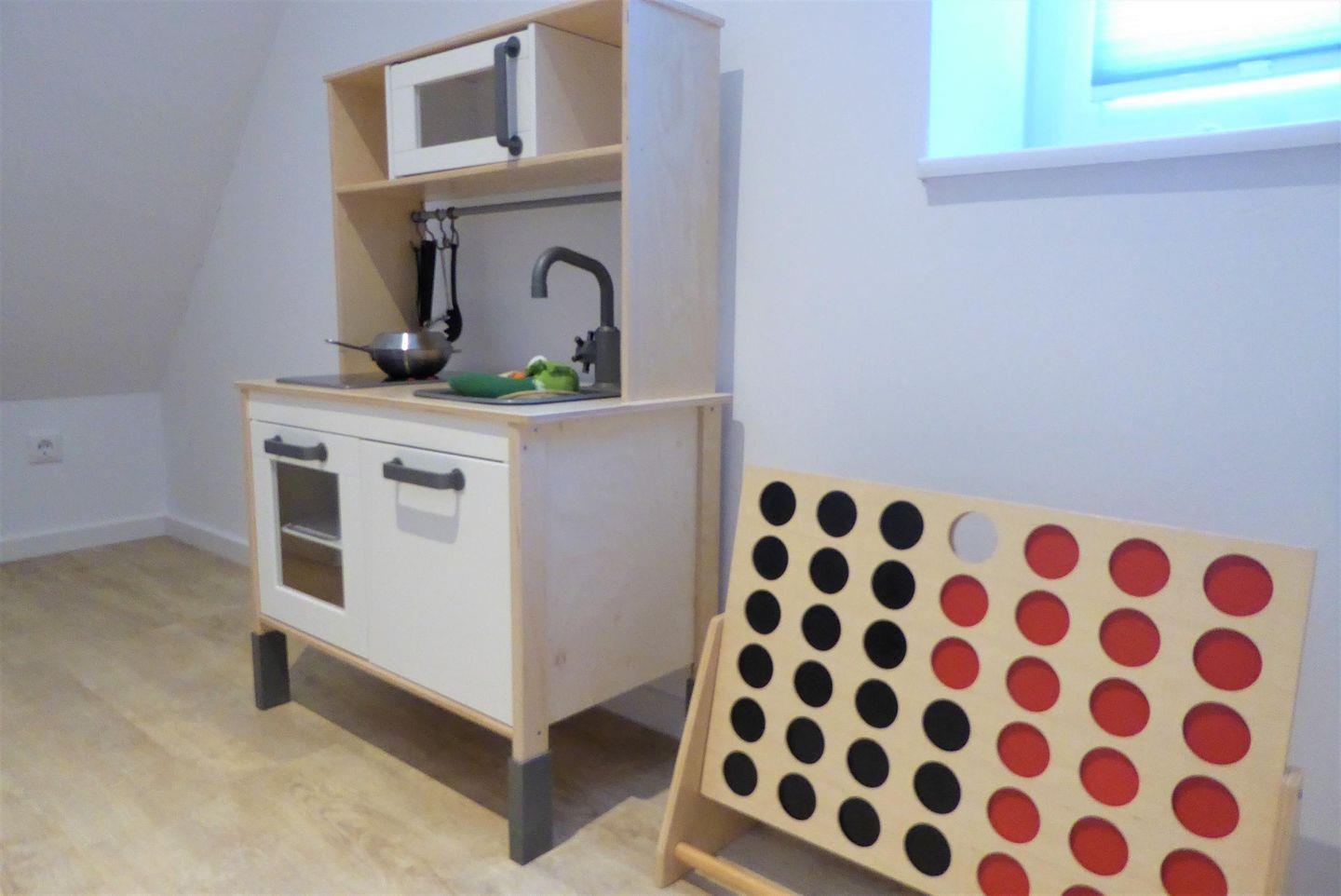 Und dann kommt für den Nachwuchs das Highlight! - Im Dachgeschoss befindet sich ein Spielzimmer mit Air-Hockey-Tisch, Spielküche, Autorennbahn, verschiedenen Gesellschaftsspielen und ganz viel Platz zum Toben!