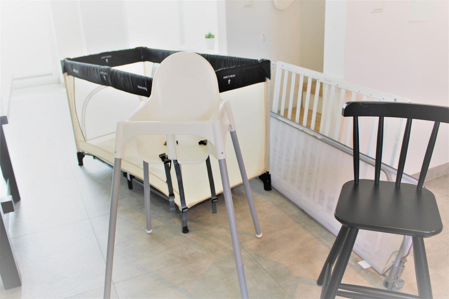 Zusätzliche Kinderausstattung: Kinderreisebett mit Matratze (Zustellbett), Kinderhochstuhl, Babyhochstuhl, mobile Bettgitter (2x), Kindertoilettensitz, Kindertritthocker in den Badezimmern, Steckdosenschutz, Treppenschutzgitter, Baby-Badewanne, Bollerwagen, Sandspielzeug
