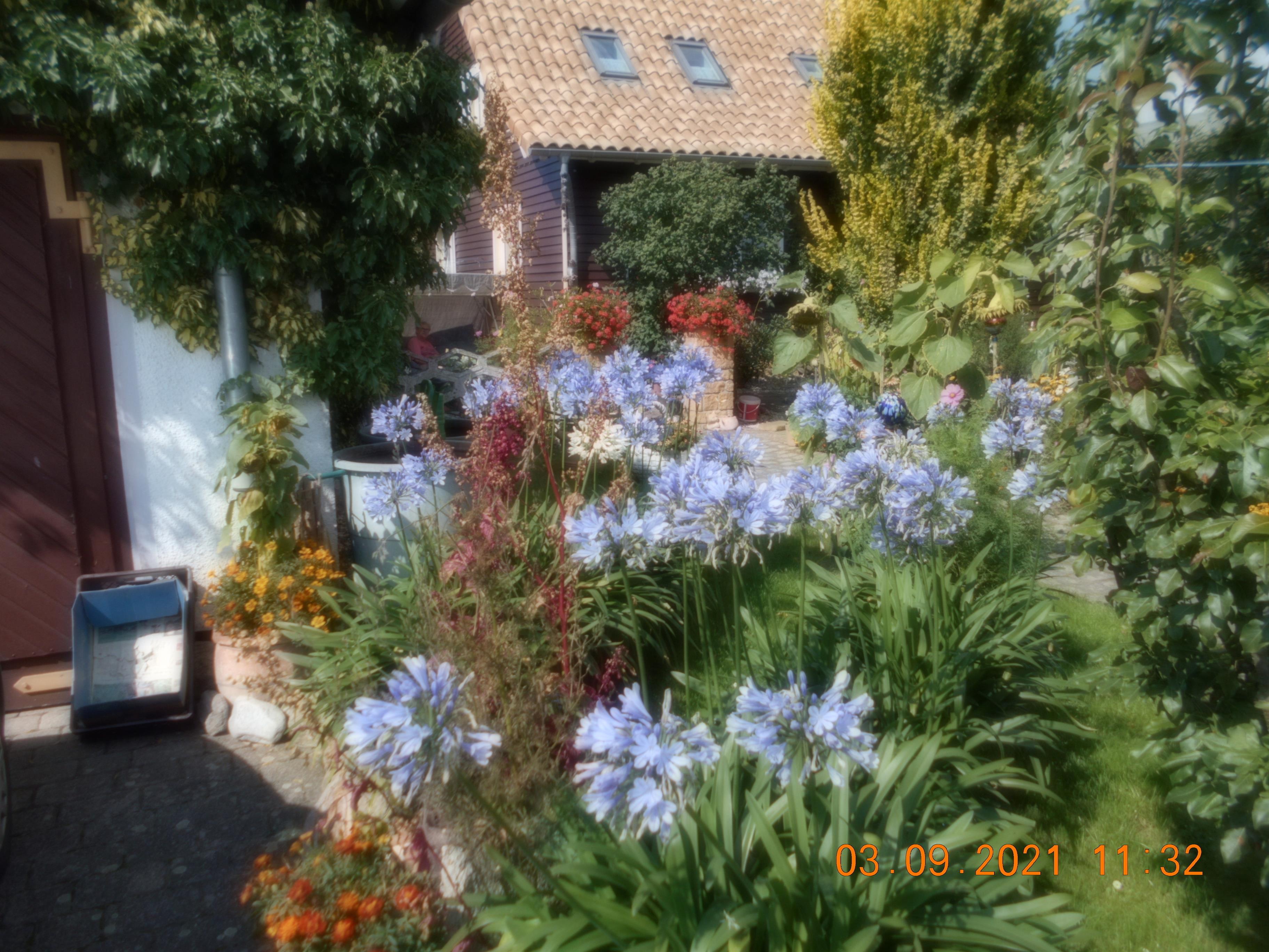 Zur alleinigen Nutzung stehen zur Verfügung: Ein sehr gepflegter Garten, Liegewiese, Sonnenschirm, Grillmöglichkeit, Terrasse, Pavillon, Gartenmöbel, Hollywood-Schaukel und Hof.