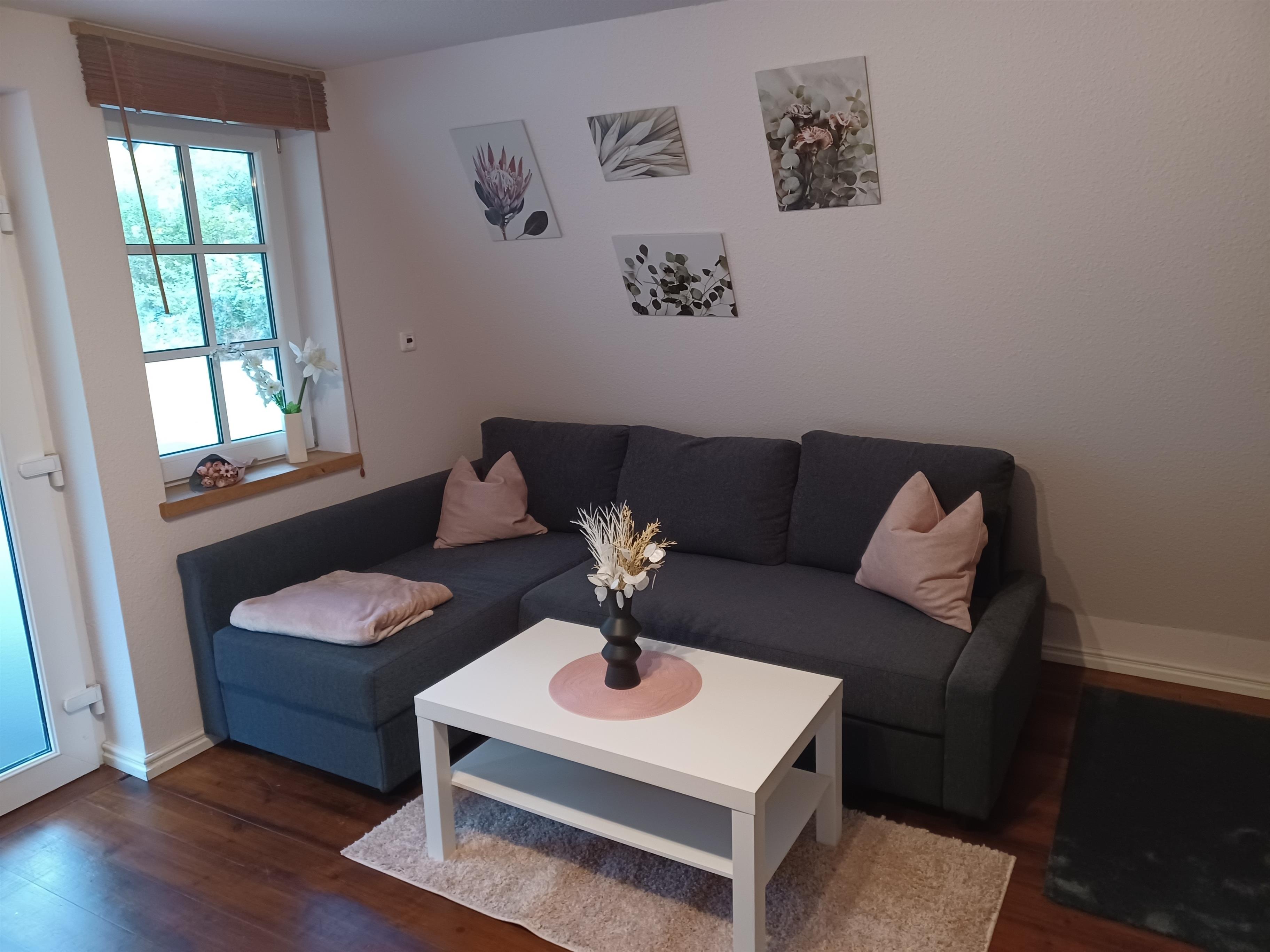 Innen erwartet Sie eine liebevoll eingerichtete und komplett ausgestattete Ferienwohnung. Die gemütliche Küche lässt keine Wünsche offen. Das großzügige Wohnzimmer bietet ausreichend Platz für gemütliche Abende. Das komfortable Schlafzimmer ermöglicht erholsame Nächte und sorgt für einen rundum entspannten Aufenthalt Die großzügige Terrasse lädt zum entspannen und genießen ein. Hier können Sie die Sonnenstrahlen einfangen, angenehme Gespräche führen oder einfach nur die Ruhe und Schönheit der Umgebung auf sich wirken lassen.