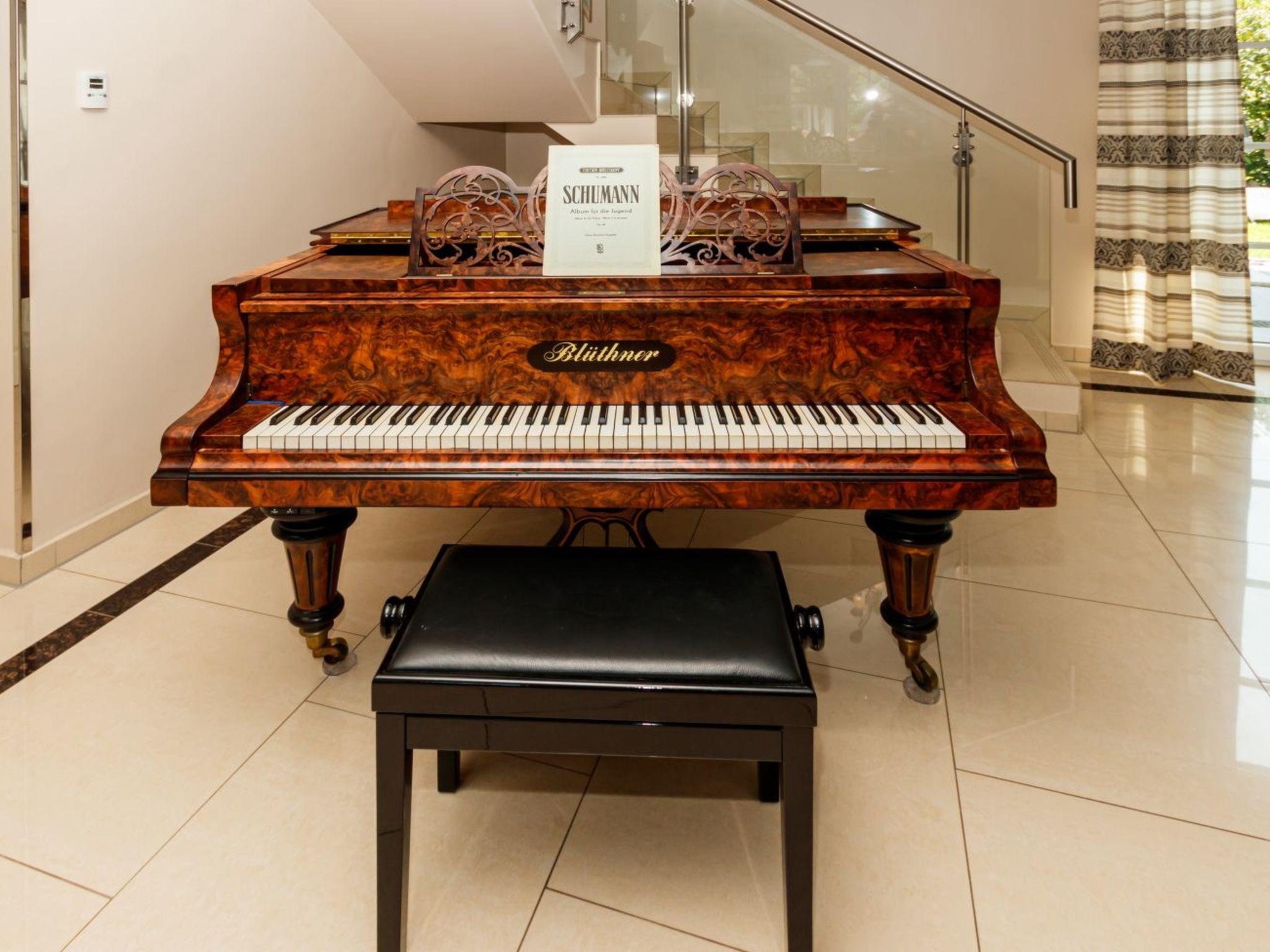 Im Inneren der Villa eröffnet sich ein Raum von Eleganz und Komfort. Der großzügige, etwa 60 qm umfassende Wohn- und Essbereich mit offenem Kamin, ausgestattet mit Antiquitäten, einem HiFi-System und einer international besetzten Bibliothek, lädt zu entspannten Lesestunden ein. Die moderne Küche bietet alles, was es braucht, um umfangreiche Menüs zu kreieren. Der luxuriöse Indoor-Poolbereich mit Gegenstromanlage, Unterwasserbeleuchtung und separatem Umkleidebereich setzt neue Maßstäbe in Sachen Entspannung und Wohlgefühl. Hinzu kommt eine imposante Sauna und ein umfassend ausgestattetes Hauptbad im ersten Obergeschoss, das keine Wünsche offenlässt.