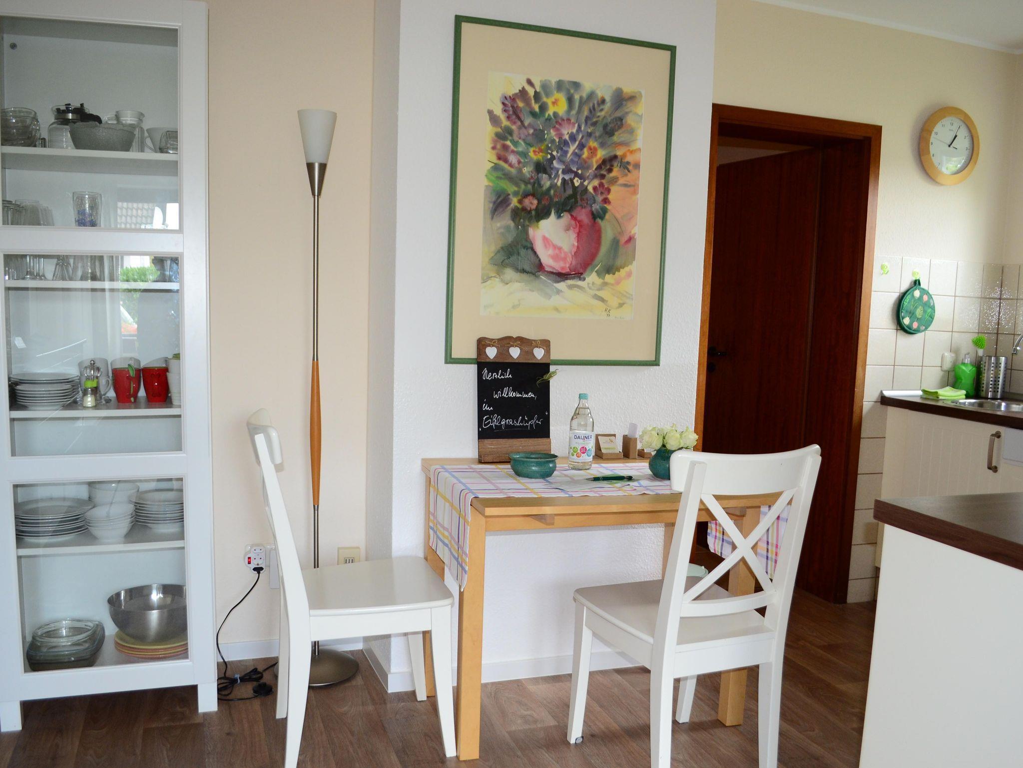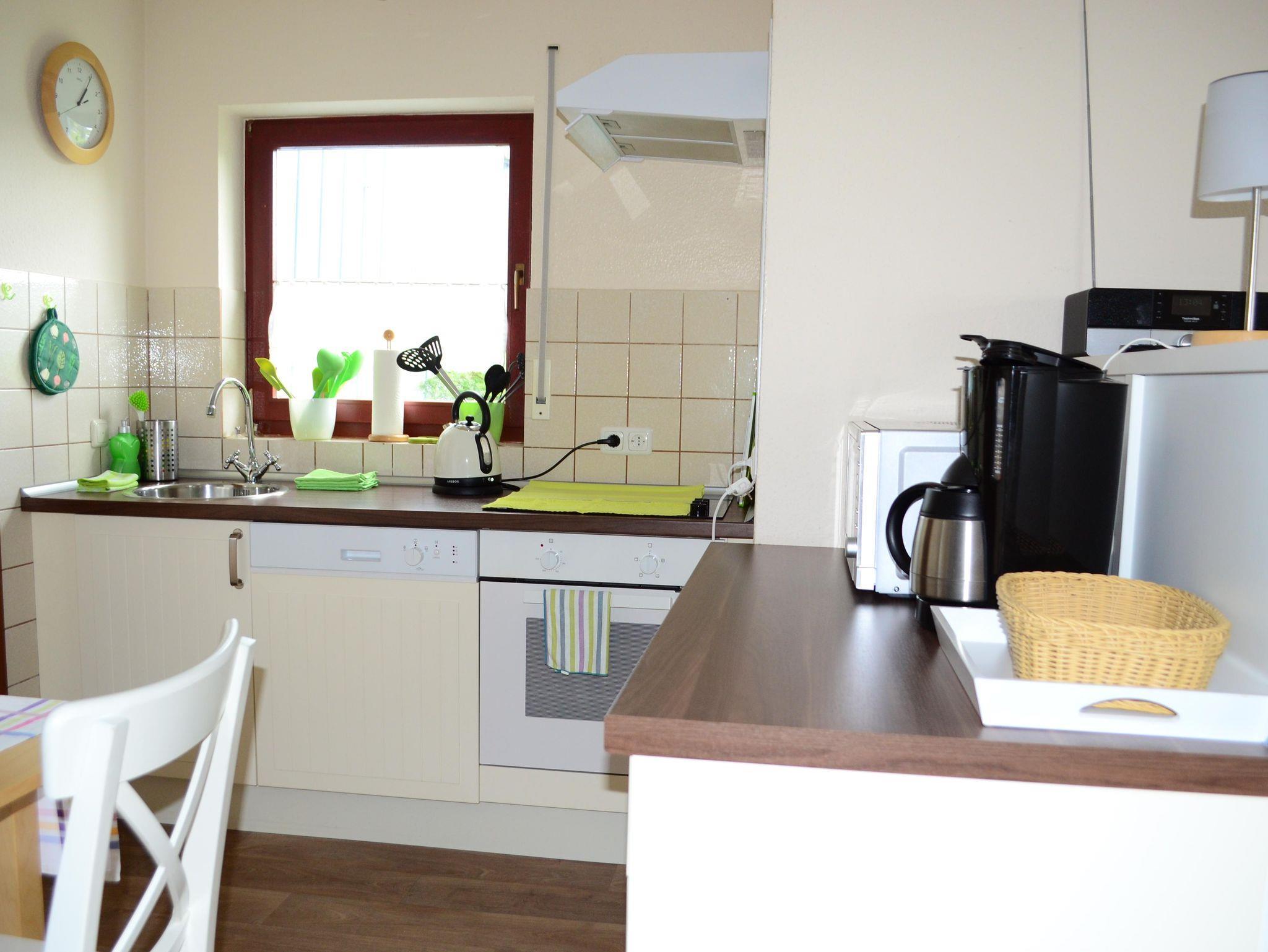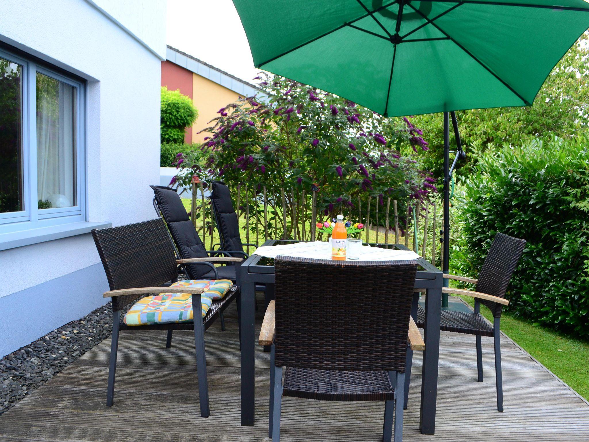 Sehr ruhig gelegene Ferienwohnung am Waldrand, nur Anliegerverkehr. Neu und hell eingerichtet mit separatem Eingang. Gemütliche Leseecke im Wohnbereich inkl. Bibliothek, Hörbücher,Flachbildfernseher, DAB/Bluetooth/CD-Anlage, usw. Eigene Terrasse mit Gartenmöbeln, Liegestühlen mit Auflagen, großer Sonnenschirm. Komplett eingerichtete Einbauküche mit Ceranfeld, Backofen, Kühl- und Gefrierfach, Geschirrspüler, Mikrowelle, Kaffeemaschine, usw.