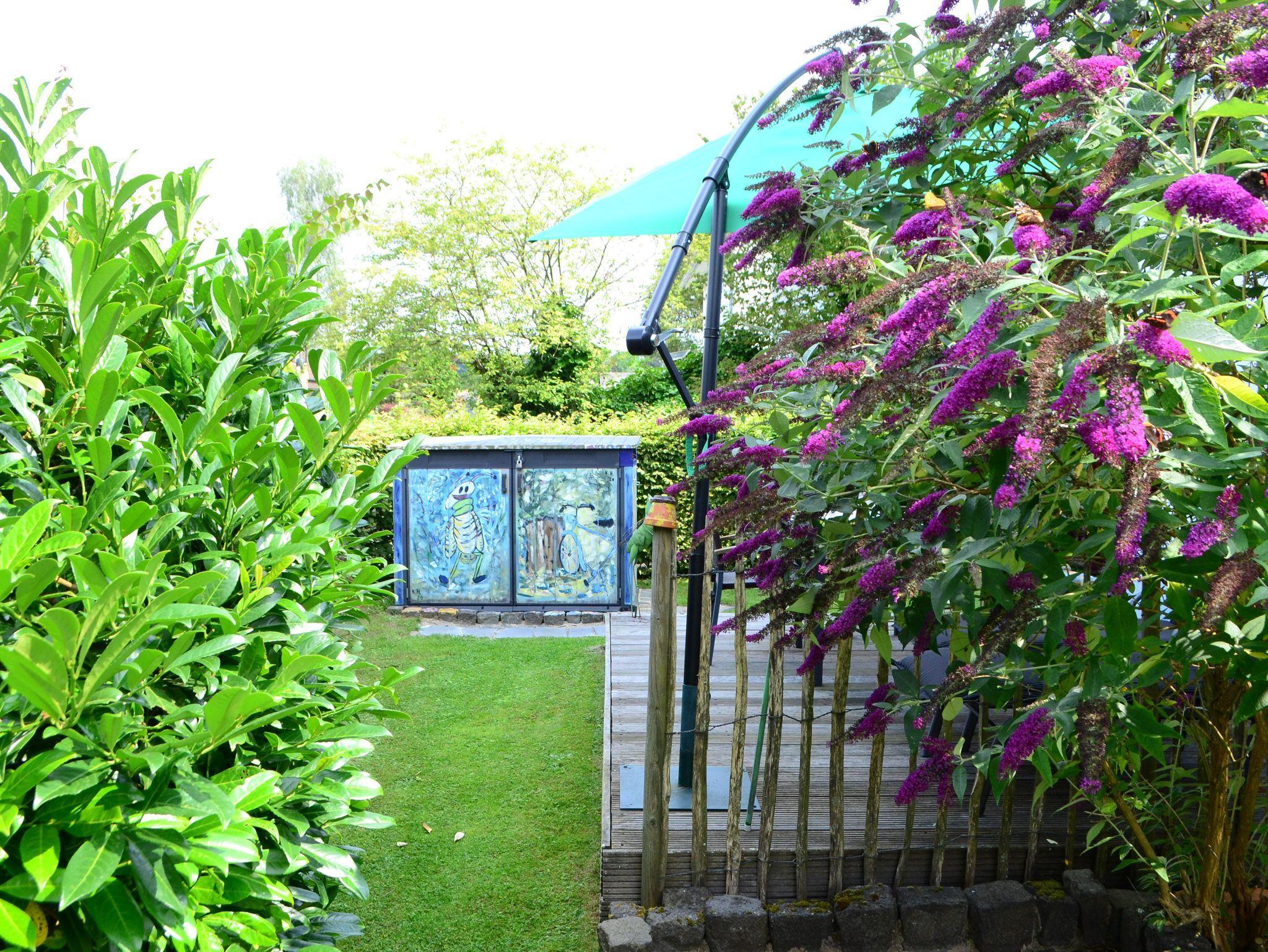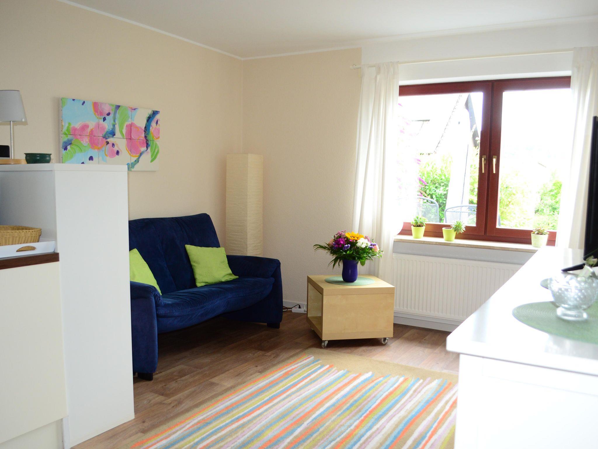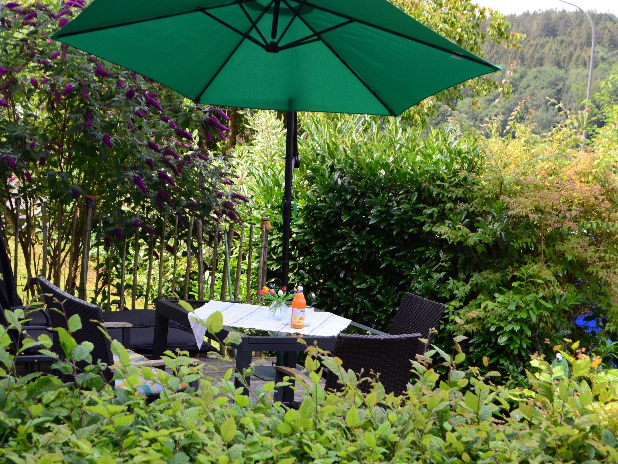 Sehr ruhig gelegene Ferienwohnung am Waldrand, nur Anliegerverkehr. Neu und hell eingerichtet mit separatem Eingang. Gemütliche Leseecke im Wohnbereich inkl. Bibliothek, Hörbücher,Flachbildfernseher, DAB/Bluetooth/CD-Anlage, usw. Eigene Terrasse mit Gartenmöbeln, Liegestühlen mit Auflagen, großer Sonnenschirm. Komplett eingerichtete Einbauküche mit Ceranfeld, Backofen, Kühl- und Gefrierfach, Geschirrspüler, Mikrowelle, Kaffeemaschine, usw.